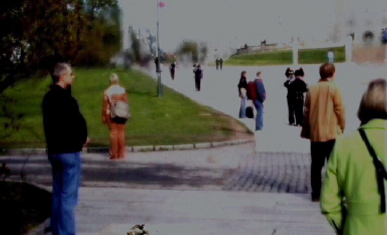 In a projection in the windows of the CBK we see how Pavlou plays with the concept of ‘now’ and ‘then’. -