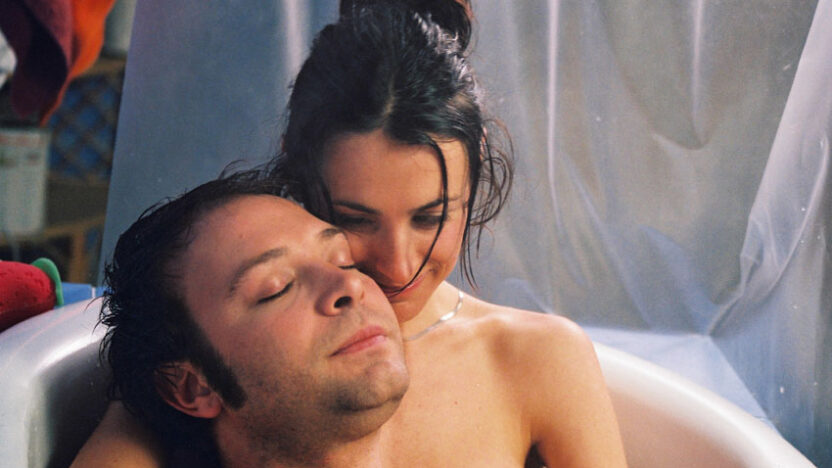 A man, a woman, a bathroom. In other words: together in a bathroom.