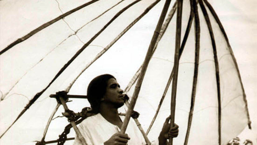 Comic impression of the ancient desire of man to be able to fly. -