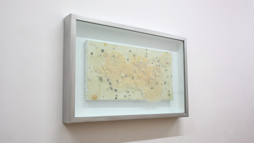 When this painting was first displayed in 2014, all one could see was a blank canvas. By now it evokes an other-worldly landscape, a colourful…