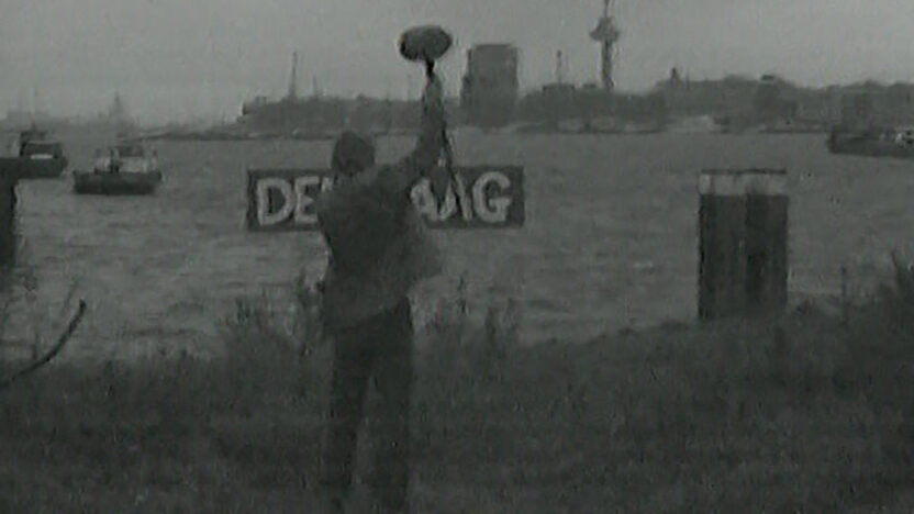 On the banks of the Meuse, Wim Gijzen erects a new town sign: The Hague. What happens when you swap the names Rotterdam and The…