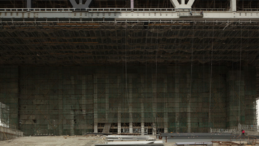 Set on a construction site in Shenzhen, China’s first Special Economic Zone, where a new stock exchange designed by Rem Koolhaas is being built. -