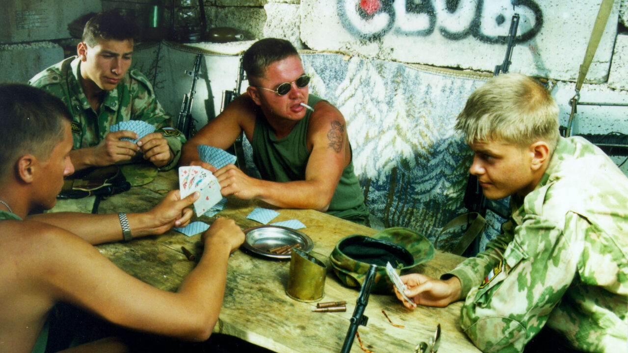 In de afgelopen eeuw zijn er talloze films over het fenomeen oorlog gemaakt, maar Blockpost is in bijna alle opzichten anders. Geen hysterische angst zoals in Vietnamfilms, geen bloederige gevechten, geen soldaten van wie de gehele familiegeschiedenis uit de doeken wordt gedaan, niet eens een pacifistisch pamflet. Wat dan wel? Ergens in de Kaukasus – nergens wordt expliciet gemaakt dat het Tsjetsjenië zou zijn – is een peloton soldaten gestationeerd. Ze worden geacht de weg te bewaken die naar een begraafplaats leidt. Het grootste deel van de dag is het rustig. De dorpelingen komen en gaan, een meisje biedt haar zusje ’te koop’ aan, er wordt betaald met kogels. Ergens ver weg zit een sluipschutter, wat betekent dat de soldaten te allen tijd op hun hoede moeten blijven. Onderling maken ze wat typisch Russische grappen (iets wat regisseur Rogosjkin – Living With an Idiot, Peculiarities of the National Hunt – als geen ander is toevertrouwd). De soldaten doen alles om de verveling te verdrijven. Ze zetten boobytraps om schapen te doden, maar zorgen ervoor dat ze de lokale milities niet tegen zich in het harnas jagen. Meestal wachten ze op nieuwe orders. Wachten, dat is het waar bij Rogosjkin een oorlog om draait. De film amuseert door zijn droge humor, maar op de achtergrond is voortdurend de dreiging aanwezig dat de status quo een onmogelijke balanceeroefening zal blijken.