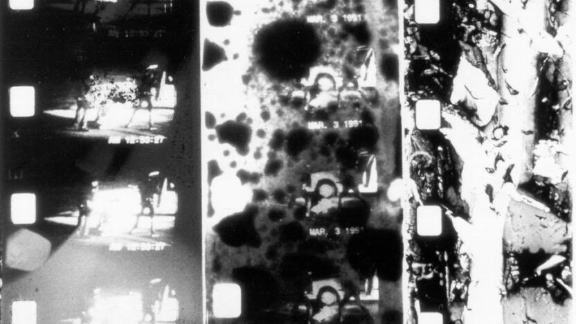 Handgemaakte, deconstructieve benadering van de befaamde Rodney King / Reginald Denny afranselingen. -
