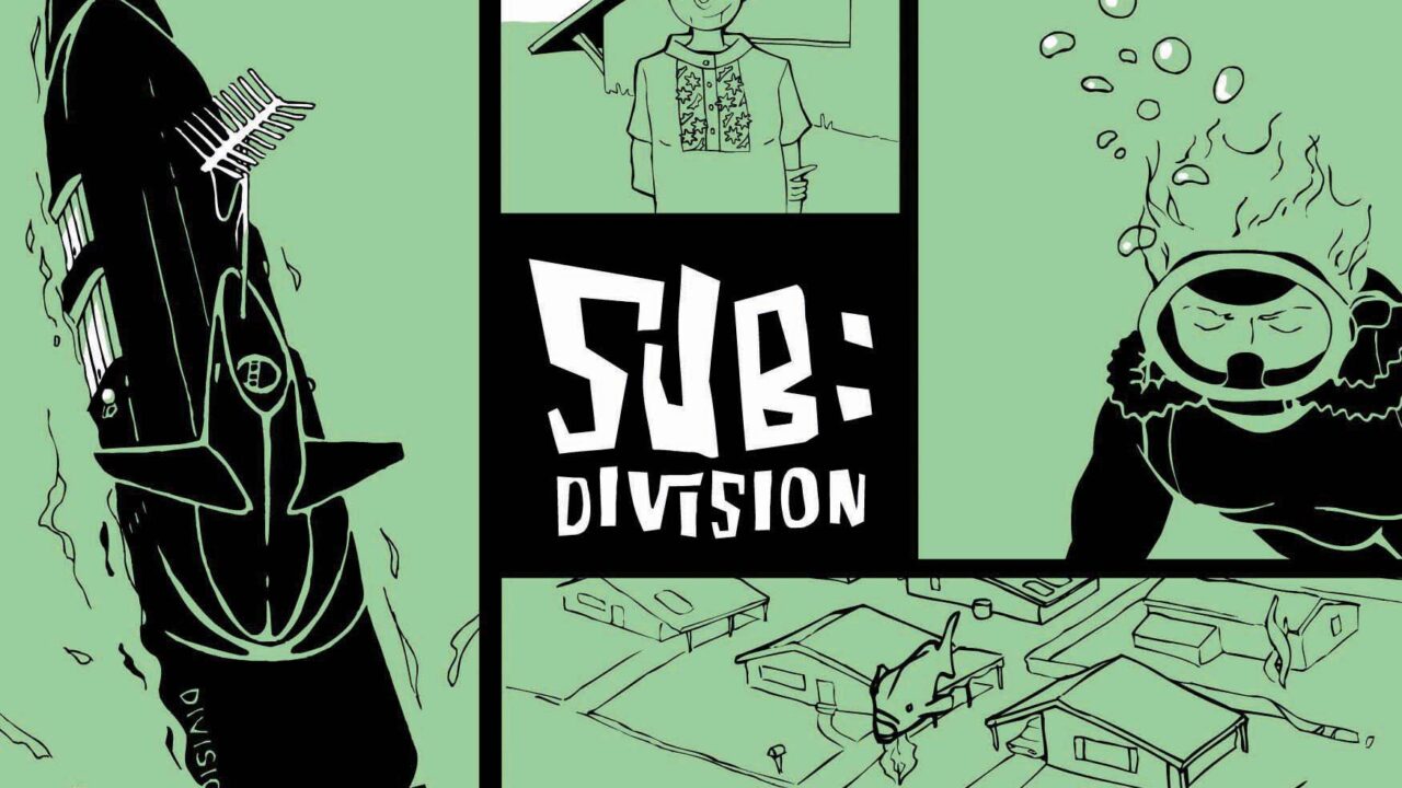 Een aantal fanatieke oud-inwoners van Californië, dat onder water is verdwenen door een aardbeving, heeft zijn intrek genomen in een onderzeeër. Hun doel is hun verdronken bezit te verdedigen en het uiteindelijk terug te vorderen. Het verhaal bestaat uit twee lagen: het primaire verhaal en advertenties die het verhaal benaderen als verhandelbaar eigendom.
