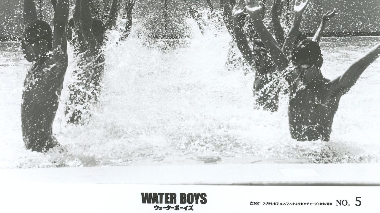 Het gaat niet goed met het zwemonderwijs op de Tadano High School. Het zwembad wordt niet schoongehouden en het zwemteam heeft nog maar één lid, Suzuki. De basketballers informeren al of ze het bad mogen gebruiken voor hun visactiviteiten. Zelfs wanneer een mooie vrouwelijke zwemcoach op de jongenschool arriveert met het plan om er het beste synchroonzwemteam van het land op te leiden, melden zich niet meer dan vijf minder dan middelmatige zwemmers. Wanneer ze ook nog vrijwel direct met zwangerschapsverlof moet, lijkt het zwemteam ten dode opgeschreven. Maar zoals het hoort in sportfilms, groeit het team juist onder de beledigingen van klasgenoten, de druk van schoolexamens en schijnbaar gebrek aan talent. En gelukkig worden ze gesteund door een malle dolfijnentrainer (Takenaka Naoto, ook te zien in Miike’s Agitator) en een club travestieten.Waterboys is kortom een komedie om van te houden. Zoals ook de eerdere films van Yaguchi (zoals Adrenaline Drive) fraai gefotografeerd, prachtig van ritme en met de juiste liefde voor de veelal onhandige tieners. De grootse (zwem)finale is een ware ode aan Esther Williamsfilms. Het gegeven is vreemd genoeg gebaseerd op ware gebeurtenissen. Verder zal het niemand verbazen dat een film waarin jongens zoveel mogelijk in kleine strakke zwembroeken rondlopen, tussen de bedrijven door nogal wat homoseksuele subtext bevat.