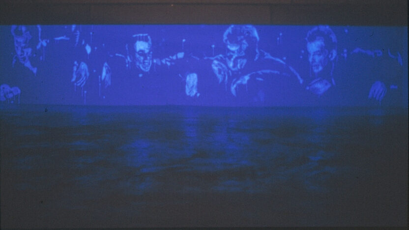 Zichtbaarheid wordt overschat, net zoals roem. Song and Dance (and a good movie) is een installatie in vier delen. Om te beginnen een projectie van Andy Warhol’s film Paul Swan, gevolgd door portretten in fluorescente, witte verf die enkel zichtbaar zijn als het lichtsysteem overschakelt op black lights. Het derde deel is de uitvoering van David Bowie’s Hunky Dory in de volledige versie. Tot slot de live reconstructie van de laatste scène uit Claire Denis’ film Beau travail, wanneer we Denis Lavant zien dansen in een disco. Voor dit deel maakte Wampler een replica van de set, studeerde de choreografie in en voert de dans uit in hetzelfde kostuum als Denis Lavant.