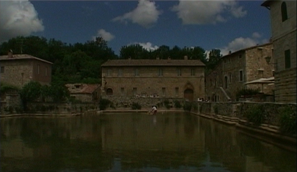 Hommage van een nederige anonieme filmmaker aan een grote meester. Bezoek aan twee locaties in Toscane die een grote rol spelen in de film Nostalghia van Andrej Tarkovski: een oude gotische kerk zonder dak en een midden in een dorpje gelegen thermaal bad. Niet helemaal vrij van ironie, want naast eerbiedige opnamen zijn er ook scènes die de locaties in een ander, luchtiger licht plaatsen.