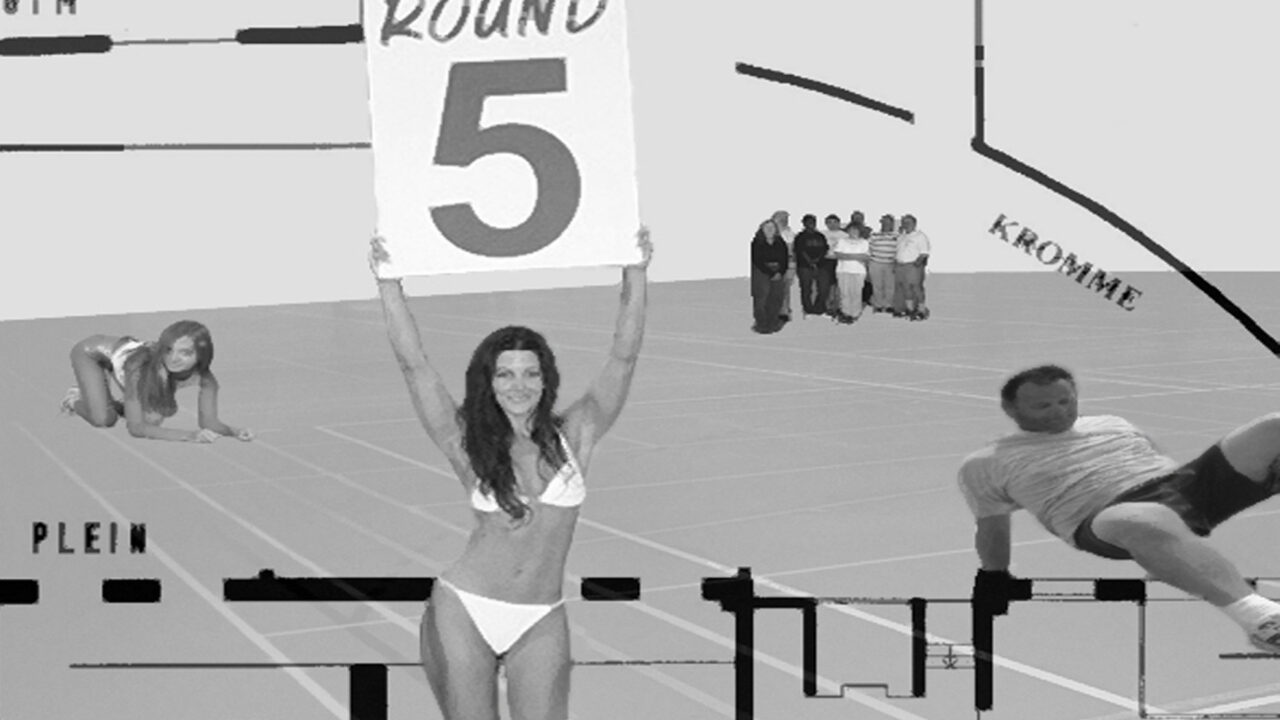 De centrale zaal in de tentoonstellingsruimte van TENT. wordt doorgaans ‘het plein’ genoemd. Het gebouw was vroeger immers een school, en die plek fungeerde toen als speelplaats. De ruimte zal door Winters en Van Heeswijk voorzien worden van gekleurde lijnen en vlakken op de vloer. Net als in een sporthal hebben deze lijnen geen betekenis tot het moment waarop ze in gebruik genomen worden door de spelers. De relatie tussen de spelers ontvouwt zich door de regels van het spel en er ontstaat een spanning die iets vertelt over de intermenselijke/relationele/sociale verhoudingen. Het is de toeschouwer die de onderliggende realiteit van de spelers en hun onuitgesproken regels definiëert.