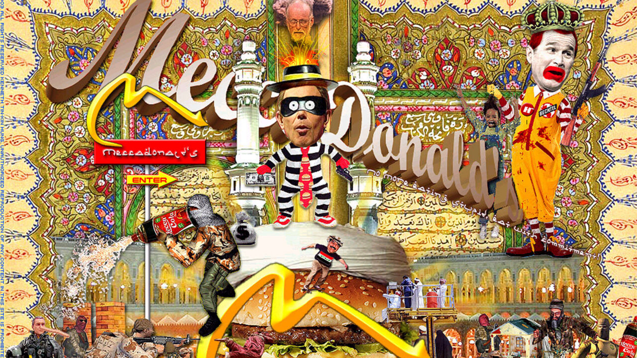 MeccaDonald’s gebruikt motieven uit de populaire cultuur, politieke gezichten en op het internet gevonden beelden. De splash-beelden van MeccaDonald’s nemen de vorm aan van reclame door actuele gebeurtenissen te reduceren tot een cartoon-achtige mythologie. De website onderzoekt het karakter van internetcommunicatie en handelt tegelijk over thema’s als identiteit, seksualiteit en macht.