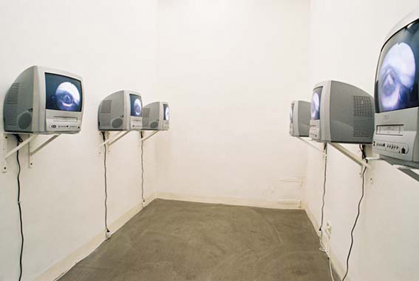 Valie Export is een van de performancekunstenaars die in de jaren zestig en zeventig de basis legden voor de interactieve media van vandaag. Ze behoort tot een traditie van feministische kunstenaars die reageren op de manier waarop vrouwen in de media worden gerepresenteerd. Export wil haar toeschouwers opnieuw in aanraking brengen met de realiteit achter de steeds grotere beeldenvloed. Wie over digitale media spreekt, mag daarom nooit het lichaam vergeten. Dat had de kunstenares al begrepen lang voordat de digitale cultuur echt bestond. In Die Macht der Sprache toont Export een strottenhoofd in actie. Het abstraherende effect van de close-up en de vermenigvuldiging van het beeld voegt een suggestieve dimensie toe aan de medische afstandelijkheid.