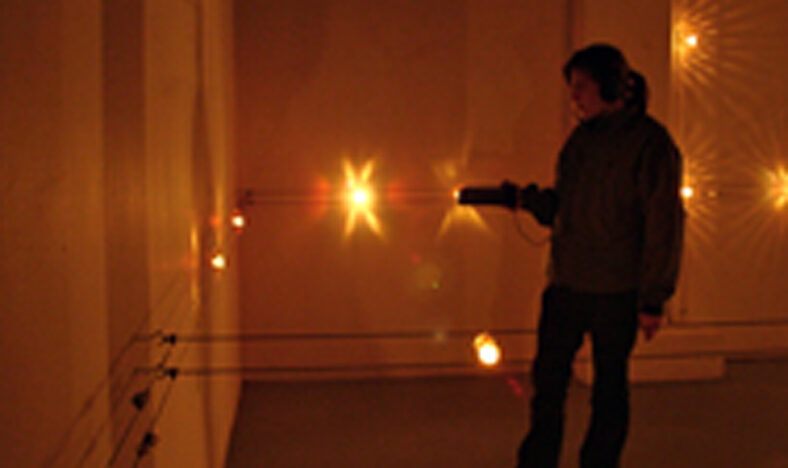 Sound Modulated Light #1 is een interactieve omgeving waarbij de bezoekers uitgenodigd worden om de ruimte te verkennen en erop te reageren. Het werk bestaat uit een omgeving van licht en geluid waarin geluid niet akoestisch aanwezig is, maar wordt uitgestraald door licht. Normale lampen zijn verbonden aan het elektriciteitsnetwerk en flikkeren nauwelijks zichtbaar op een frequentie van 50Hz. Dit kan begrepen worden als een draagsignaal voor een 50Hz-geluid. Voor de installatie wordt het signaal vervangen door anders samengestelde signalen. Vandaar dat de lichten dienen als geluidsdragers. De ruimte bestaat uit een meervoudig lichtdesign waarin elke lichtbron een dubbele rol vervult: ze is onderdeel van het lichtontwerp en onderdeel van het geluidsontwerp. Het geluid is bovendien nog eens gemoduleerd via het licht door variatie in intensiteit. De bezoekers van de installatie krijgen een speciaal draagbaar apparaat met lichtsensoren. Dat maakt het gemoduleerde licht hoorbaar via een koptelefoon. Met andere woorden: een ‘licht’-ontvanger in plaats van een radio-ontvanger. Het evenwicht tussen de verschillende geluiden hangt af van de intensiteit van het licht dat opgevangen wordt. Het geluid verandert volgens de bewegingen van de bezoeker omdat elk licht een ander geluid uitstraalt. De ruimte zelf evolueert dynamisch in de loop van de tijd. De lichtcompositie evolueert en daarmee ook de geluidscompositie.