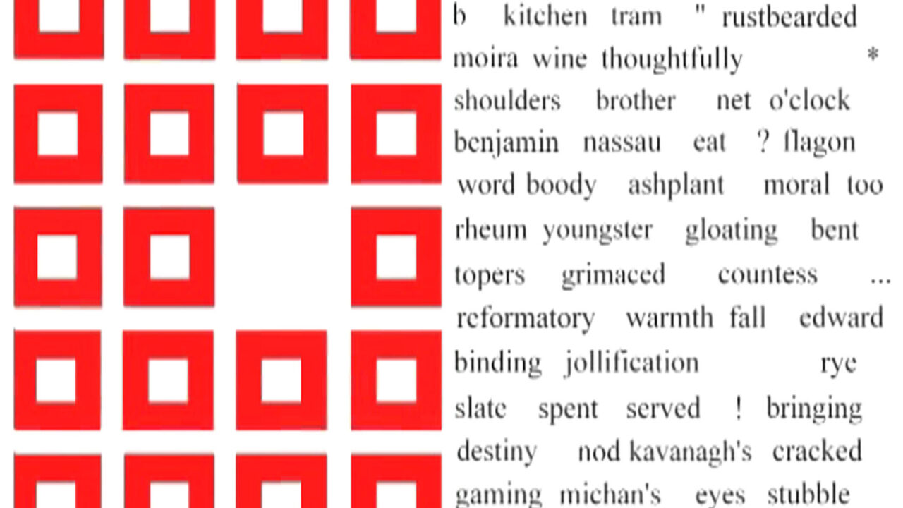 De tekst die de rechterzijde van het beeld woord voor woord vult is afkomstig van het hoofstuk 10, ‘Wandering Rocks’, uit James Joyces Ulysses. De 3500 woorden worden volgens een willekeurig systeem – gebaseerd op het ‘orfisme’, de stijl van de Franse surrealistische dichter Apollinaire – geordend en uitgesproken door negentien computergegenereerde stemmen, naar de negentien protagonisten uit het boek.