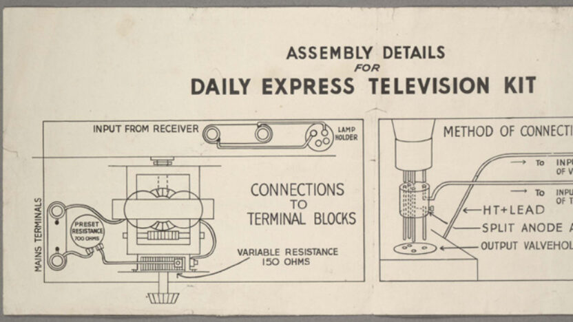 Installatie stelt een televisie van de toekomst voor zoals die nu zou zijn, versterkt en versneld richting vergetelheid, met een montage zonder mensel -