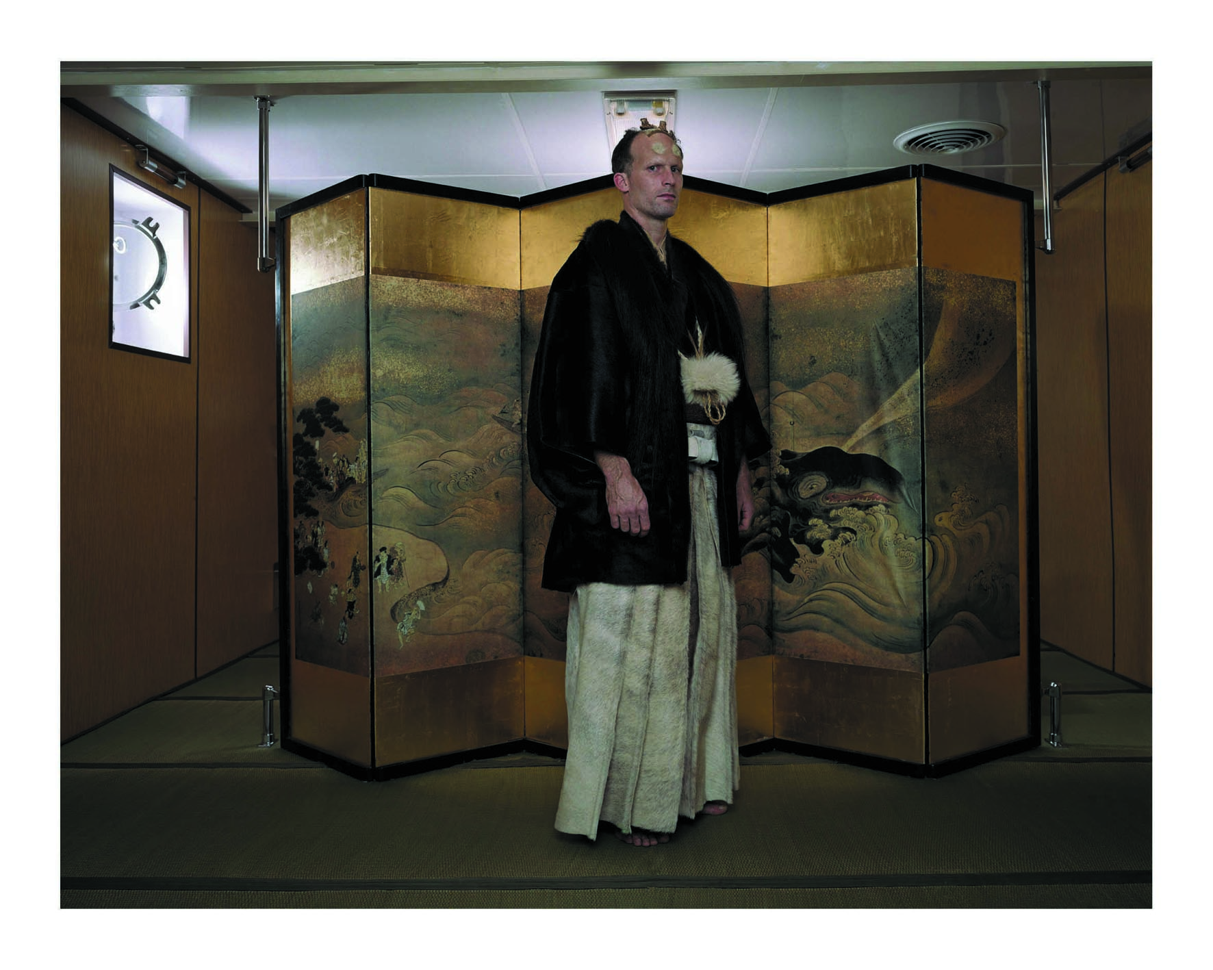 Zeggen dat Matthew Barney beeldend kunstenaar is, is wellicht net zo overbodig als zeggen dat Björk popzangeres is. Samen vormen ze een celebrity-duo dat weinig introductie behoeft. Dat een beeldend kunstenaar films maakt en een zangeres acteert is op zich ook geen groot nieuws. Maar de schaal en de ambitie van Barney’s ondernemingen op filmgebied zijn wel van een bijzondere orde (ook deze film is onderdeel van een oeuvre). Barney maakt inderdaad film, geen kunstenaarsvideo of bescheiden kunstfilm. Bescheidenheid is een woord dat sowieso niet in Barney’s woordenboek en al evenmin in dat van co-scenariste en componiste Björk voorkomt. Ook de vorm van Drawing Restraint 9 is bijzonder. De film heeft de allure van een speelfilm en is tegelijkertijd ook een documentaire over een artistiek ritueel, een performance – al is deze weer speciaal voor de film bedacht en uitgevoerd. Japan en alles wat Japans is of kan zijn vormt de leidraad van deze film, die zich voor een groot deel aan boord van de walvisjager Nisshin Maru afspeelt. De boot is net zo echt als de bemanning, maar het ritueel dat op de boot wordt uitgevoerd is volledig fictief. Het is een soms bizar mengsel van elementen uit zeer diverse delen van de Japanse cultuur. Een van de opmerkelijkste onderdelen is de bereiding van een enorme drilpudding op het scheepsdek. Het waarom blijft duister, maar dat hindert niet. Het hoe is immers spectaculair genoeg. (GjZ)