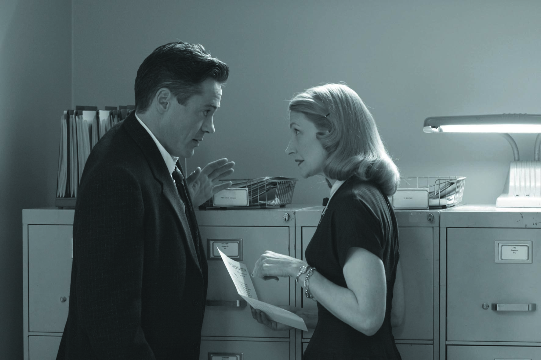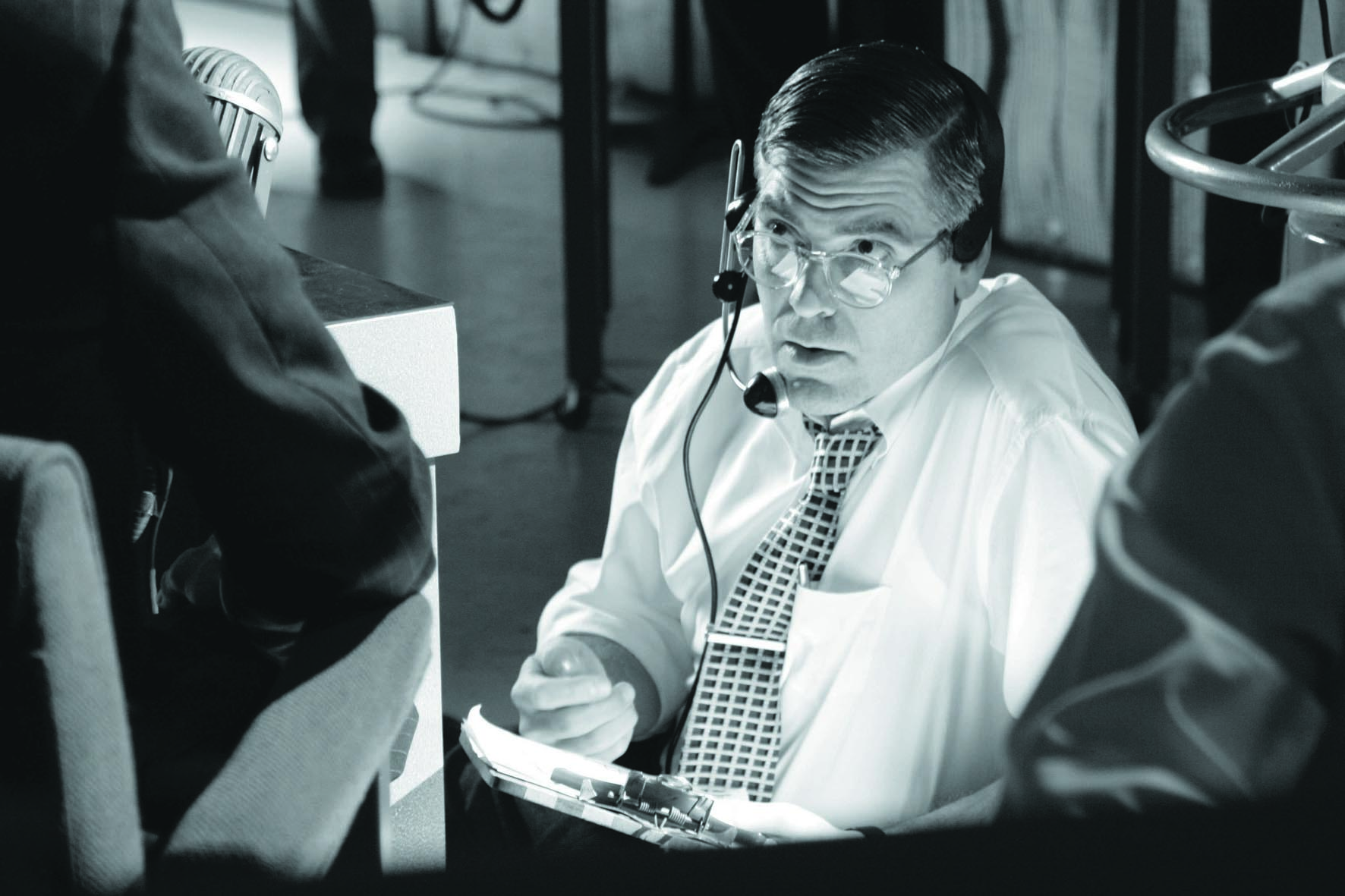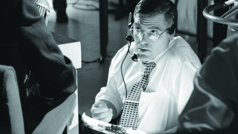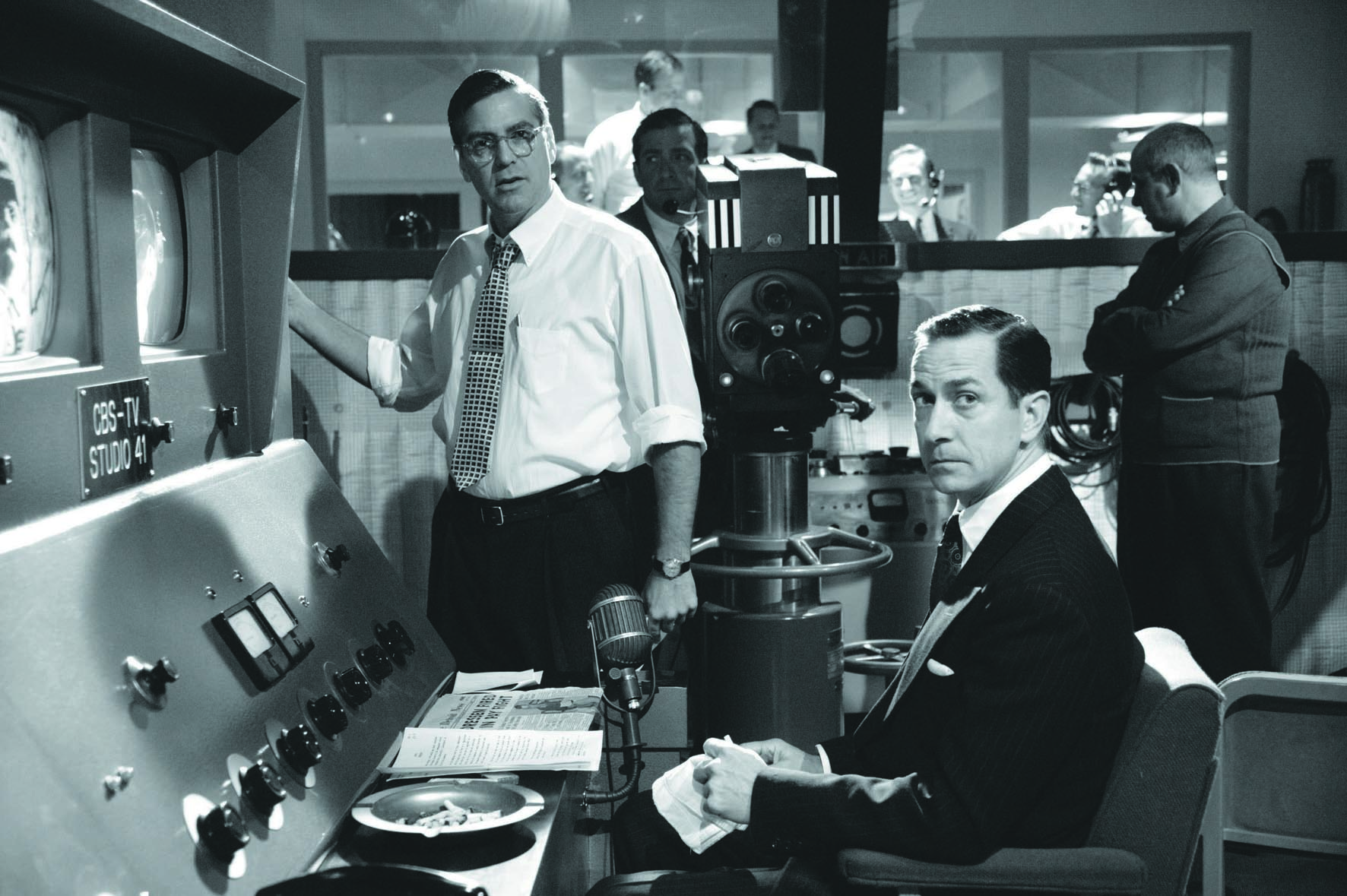 Good Night, And Good Luck. (de punt hoort daar), is meer dan alleen een zorgvuldig vormgegeven en fraai gespeeld zwart-witdrama over de confrontatie tussen de communistenjagende senator Joseph E. McCarthy en het wat saaie nieuwsicoon van CBS, Edward R. Murrow. De laatste schaarde zich niet achter angstvallig zwijgende collega’s, maar bleef met zijn ‘See It Now’-programmateam volhardend naar de feiten zoeken. In de hedendaagse ‘United States of Amnesia’, zoals criticaster Gore Vidal zijn land pleegt te noemen, is een (off-)Hollywoodfilm waarin op een realistische, bescheiden manier een morele spiegel wordt voorgehouden aan media en politiek een opsteker, een waarschuwing en een unicum. De keuze om McCarthy alleen als zichzelf op te voeren is briljant: iedere acteur zou in die rol van overacteren beticht worden, zo blijkt uit de archiefbeelden van de fulminerende politicus. Het merendeel van de handelingen speelt zich af op de levendige, licht anarchistische redactieburelen, waar het aantal sigaretten dat gerookt wordt inmiddels als historisch detail mag gelden en de algemene paranoia van de tijd door camaraderie en scherpe dialogen buiten de deur wordt gehouden. De film is ook een eerbetoon aan Clooney’s vader, die in het midden van de vorige eeuw voor de televisie werkte; het medium dat volgens Murrow zijn potentie te grabbel gooide onder politieke en commerciële druk, en ingezet wordt om ‘ons af te leiden, te misleiden, te amuseren, en te isoleren’. (GT)