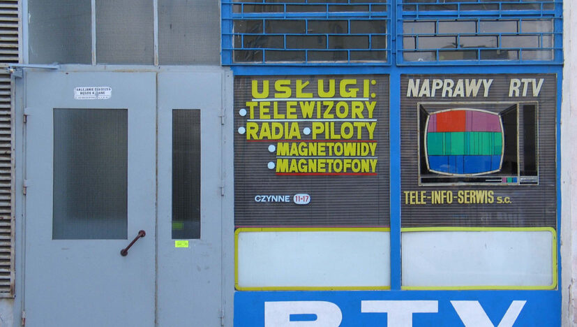 Geïnspireeerd door een uithangbord dat ze vond bij een werkplaats in een van Warschaus grauwe flatgebouwen, schilderde Sosnowska een pseudo-reclame wa -