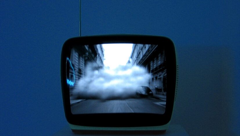 Installatie onderzoekt de werkelijke aard van televisie, met haar ontelbare zenders, alomtegenwoordigheid en oneindige stroom beelden. Door middel van -