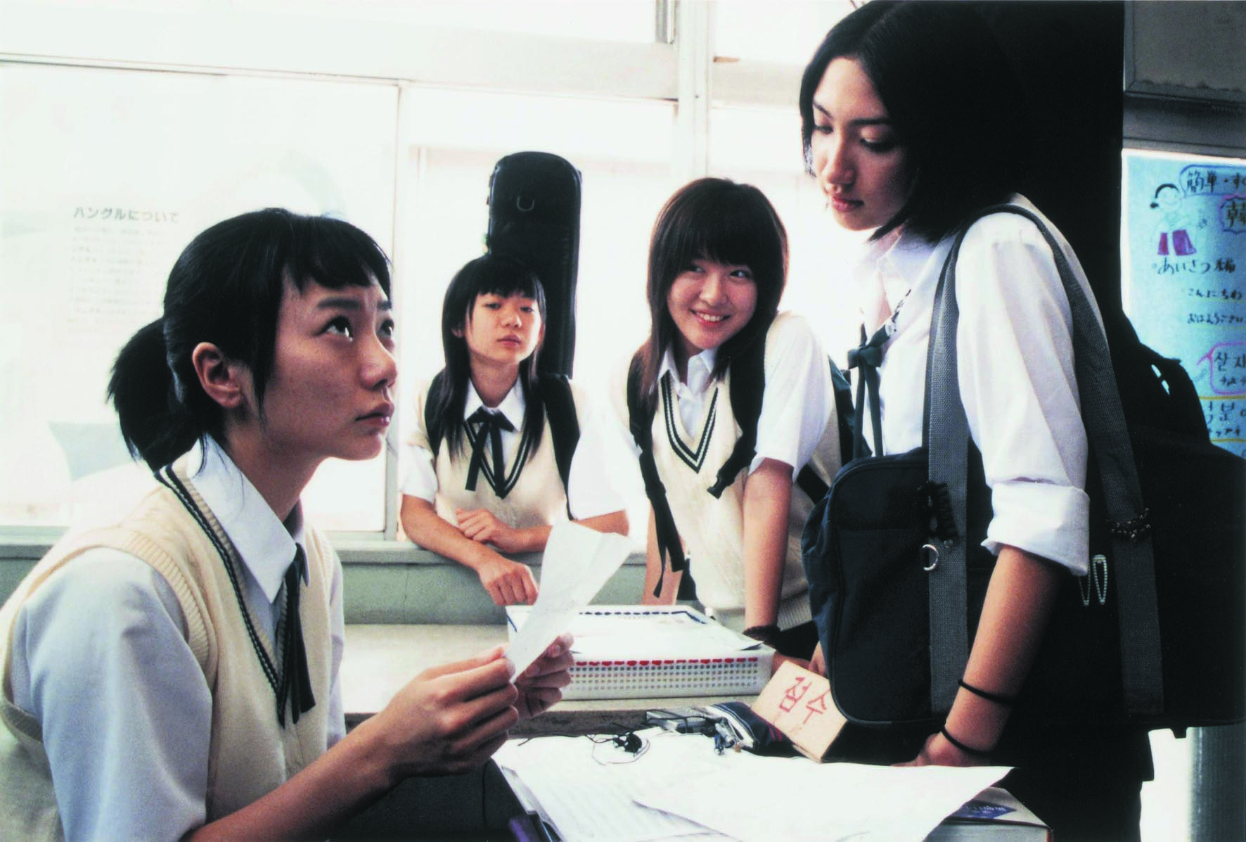 Linda Linda Linda is het grootste publiekssucces tot nu toe voor Yamashita Nobuhiro, de chroniqueur van de Japanse recessie, die eerder slacker-meesterwerken als Hazy Life (Tiger Awards Competitie 2000) en The Ramblers maakte. Hier maakt hij met zijn droogkomische sensibiliteit een hormonaal correcte, charmante en uiteindelijk meeslepende variant op het wat uitgekauwde subgenre van films waarin een bandje van middelbare scholieren obstakels moet overwinnen alvorens te schitteren. Het begint als op de Shibazaki School een muziekcompetitie voor de deur staat en een bandje uit elkaar spat. Verschil van mening over de creatieve koers heet dat. Medeoprichtster Kei besluit ter plekke om de Koreaanse uitwisselingsstudente Son te vragen als zangeres (gespeeld door de fantastische Bae Doo-Na, eerder te zien in Barking Dogs Never Bite en Take Care Of My Cat). De liedjes die ze gaan spelen, van de Japanse punkpopband The Blue Hearts uit de jaren tachtig, kent Son niet. Sterker nog, ze spreekt nog niet eens Japans en dat terwijl ze nog maar drie dagen de tijd hebben. De band zal uiteindelijk de zaal plat spelen – geheel volgens de regels van het genre – met de onweerstaanbare hit waar de film zijn titel aan ontleent. Maar voordat het zover is, toont Yamashita haarscherp het amalgaam aan rivaliteiten en liefdes, misverstanden en giechelbuien, verlegenheid en doldriestheid die – achteraf – een onmiskenbare nostalgie naar de middelbare school oproepen. Naast de liedjes valt ook te genieten van een fraaie score van James Iha, ex-gitarist van de Smashing Pumpkins. (GT)