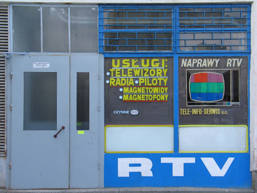 Geïnspireeerd door een uithangbord dat ze vond bij een werkplaats in een van Warschaus grauwe flatgebouwen, schilderde Sosnowska een pseudo-reclame waarin ze niets anders dan zichzelf adverteert. Haar schilderij van het testbeeld op een tv-scherm is illusionair en maakt gebruik van trucjes om de toeschouwer in een optische val te lokken. In een wereld waar mensen constant worden aangevallen door reclameboodschappen, verwordt Sosnowska’s nutteloze beeld tot een vreemde ingreep.