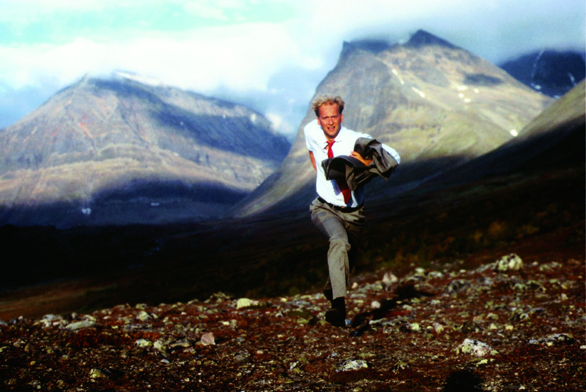 Een man kijkt uit over de zee. Hij haalt een kompas te voorschijn en bepaalt waar het noorden is. Hij begint te rennen.