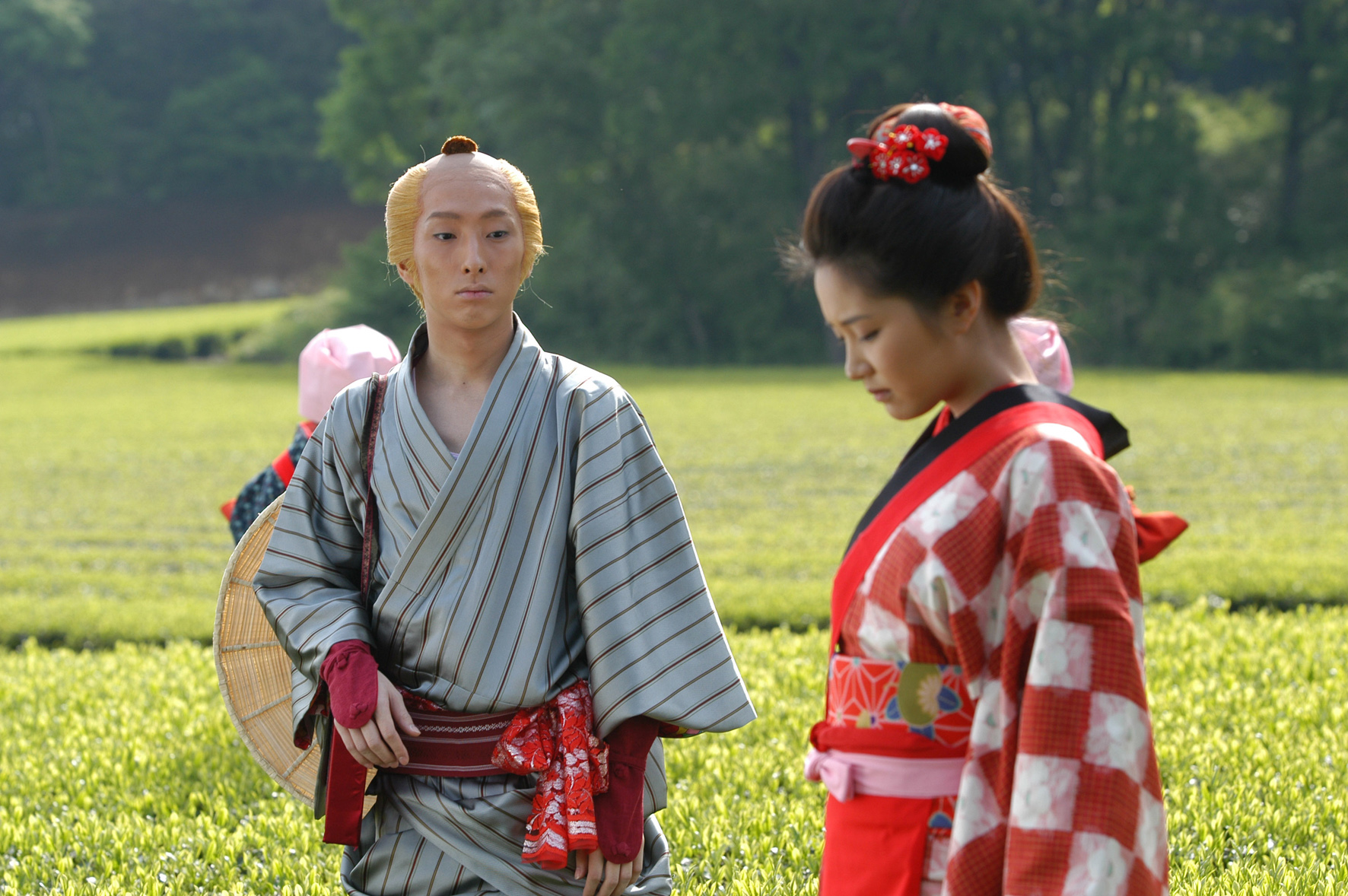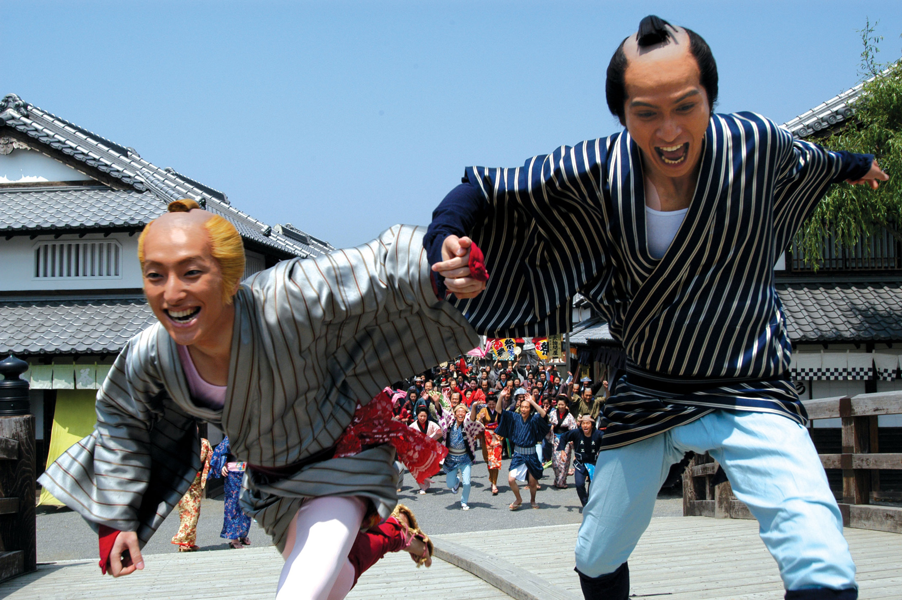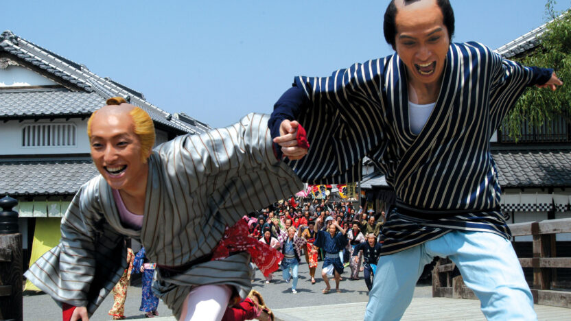 In het publiciteitsmateriaal van de film wordt de vraag gesteld: ‘waar ligt de grens tussen echt en onecht?’ Wie de film ziet, zal snel inzien dat deze vraag nog retorischer is dan gebruikelijk. De film ontkent namelijk doodleuk die in film toch al vaak arbitraire grens. In deze uitbundige, ja uitzinnige film, wordt het onechte als echt gevierd. Nergens in deze grootse en absurdistische komedie is te merken dat we hier te maken hebben met een debuutfilm. Het vakmanschap is verbluffend. Misschien wijst alleen de onbevangenheid, of misschien zelfs overmoed, op het feit dat het hier gaat om de eerste regie van een overigens gelauwerd scenarioschrijver. Zelden zal een film zo uitgesproken, zo vrolijk, maar toch niet lichtzinnig met drugs zijn omgegaan. Kita is een jonge, geblondeerde acteur. Hij is verslaafd aan blauwe pillen. En openlijk gay. Het verhaal speelt in de vroege negentiende eeuw, in het Edotijdperk, toen een zeer traditioneel Japan nog geïsoleerd was van de rest van de wereld. Yaji is Kita’s vriend en geliefde (al is Yaji ook getrouwd) en samen besluiten ze een bedevaartstocht te maken naar de Isotempel om Kita van zijn verslaving te genezen. Onderweg beleven ze de gekste avonturen en verandert de film voortdurend van genre en gedaante. Kankuro Kudo baseerde zich op een beroemd oud reisboek, Tokaidochu Hizakurige, en een mangaversie van dat boek (van Kotobuki Shiriagari), maar met beide bronnen is hij zichtbaar vrij omgesprongen. (GjZ)