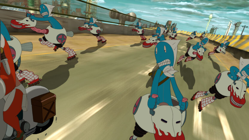 ‘Ik wil Disney en Japanimation verslaan!’, aldus Joe Bum-Jin, geestelijk vader van het licht bizarre universum van Aachi (‘no pain, big gain’) en Ssipak (ruwe bolster, snel verliefde pit). Dat betekent: geen lieflijke stilering of happy end, maar animatie voor (niet al té) volwassen mensen. Plaats van handeling is Shit City, waar alle energie wordt gehaald uit menselijke uitwerpselen. De overheid, monopolist op dit gebied, verspreidt verslavende ijslolly’s om de productie op peil te houden. Reeds bij geboorte krijgt de burger een sensor geïmplanteerd die de stoelgang vastlegt. Maar de stad wordt geplaagd door de ‘Luierbende’, even verslaafde als agressieve baby’s die, aangevoerd door de Luierkoning, te hoop lopen tegen het één-lolly-per-dag-beleid. Ze worden bestreden door de strontpolitie en een biotische cyborg, Geko. Enfin, zo staan de zaken ervoor op het moment dat Aachi en Ssipak, opportunistisch tuig van de straat maar desalniettemin onze helden, kennis krijgen aan de sexy Beautiful die… eh… dat voert te ver. Laten we het erop houden dat zij een gewilde bron van ijslolly’s is. Joe’s enerverende animatiefilm zit vol heerlijke Koreaanse rock en vol verwijzingen naar onder meer Mad Max, Pulp Fiction, Indiana Jones en ook mangaklassieker Akira. Geen van alle is bijzonder fijnbesnaard. Maar ach, dat was ook niet de bedoeling van deze scatologische blockbuster. (GT)