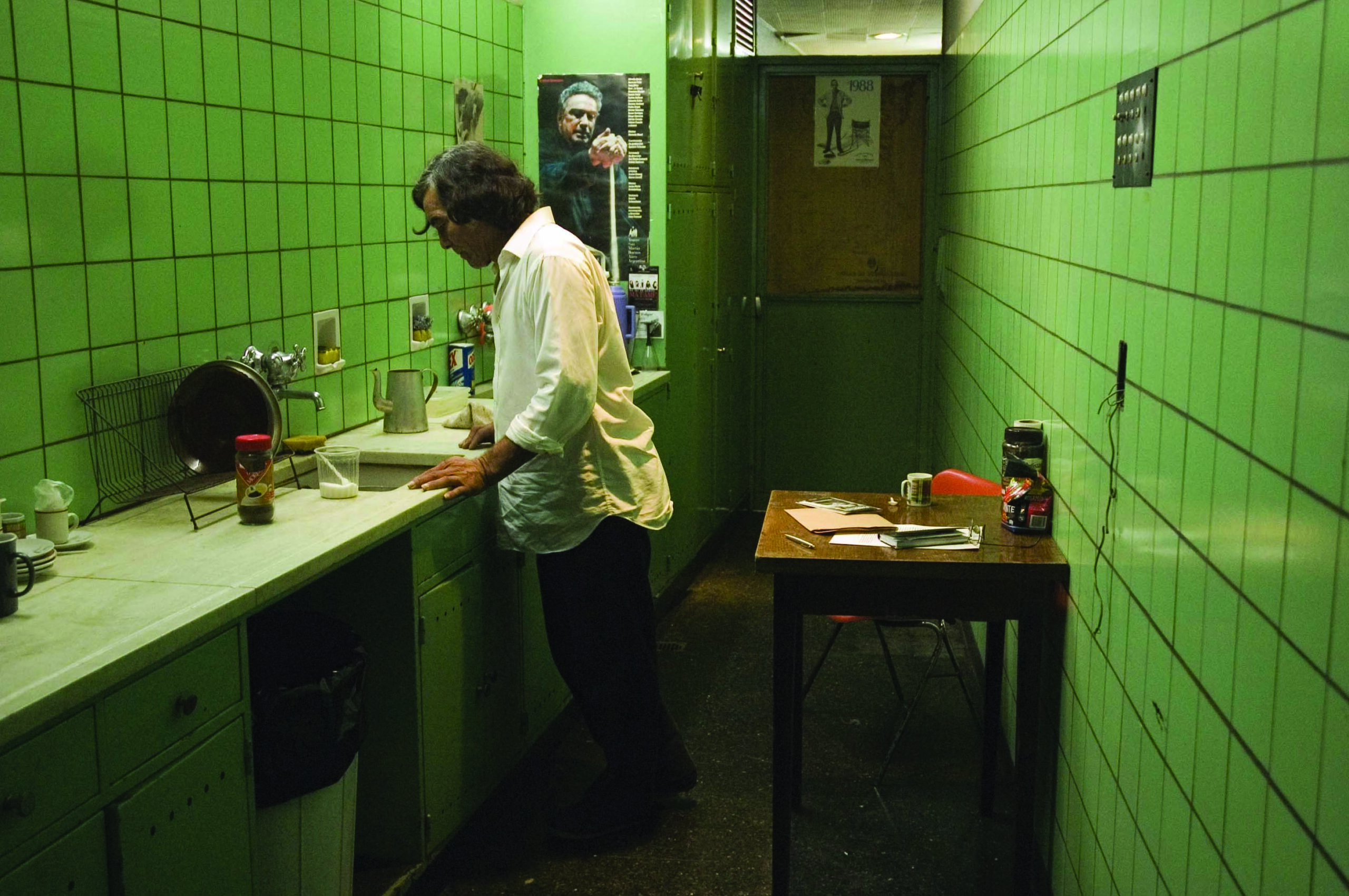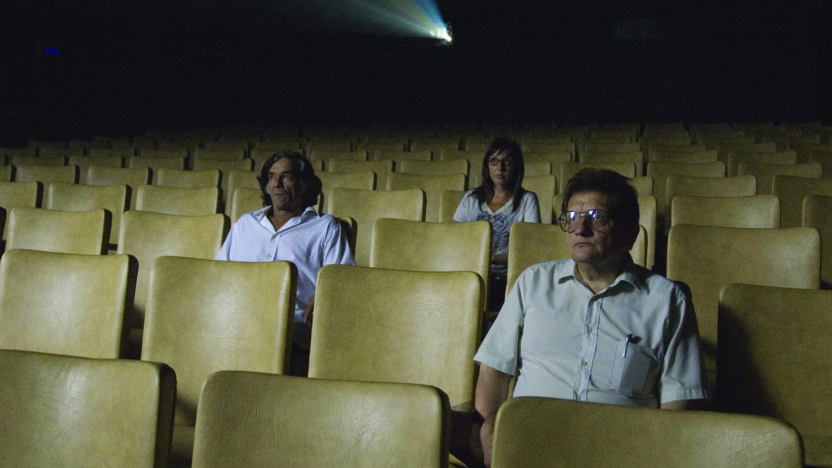 Narcisme is over het algemeen een negatieve kwalificatie maar kan ook – zo blijkt hier – een stimulerende creatieve bron zijn. Fantasma is wel een tussendoortje genoemd. Misschien vanwege zijn lengte of vanwege het feit dat de filmmaker terugkijkt naar zijn twee eerdere films. Je zou kunnen zeggen dat de filmmaker de balans opmaakt. Maar je kunt ook zeggen dat hij hier een nieuwe weg inslaat en en passant afscheid neemt van zijn eerdere werk. Hij kijkt niet naar zijn eerdere films om ze te herhalen, maar juist om een andere ruimte en sfeer te verkennen. Lisandro Alonso is dus de maker van La libertad en Los muertos: een minimale film over een houthakker, Misael Saavedra, en een al even minimale film over een moordenaar, Argentino Vargas. Dat waren geen acteurs, maar mannen van het land en van de bossen. Nu staan ze echter midden in Buenos Aires, in een soort gebouw waar ze nooit eerder waren. Het San Martin Theater is een cultuurtempel. Het heeft duidelijk betere tijden gekend, maar is nog steeds een hoeder van de cultuur. Een verdwijnende cultuur, hoor je de filmmaker denken. De houthakker en de moordenaar dwalen en verdwalen door het gebouw, voordat ze het kleine zaaltje Leopoldo Lugones vinden waar Los muertos zal worden vertoond. De camera volgt hun dwaaltocht in soepele en lang aangehouden bewegingen. Zonder toelichting of tekst houdt de filmmaker een pleidooi dat zijn eigen werkt ver overstijgt. Een pleidooi over het koesteren van een bepaalde cultuur. (GjZ)