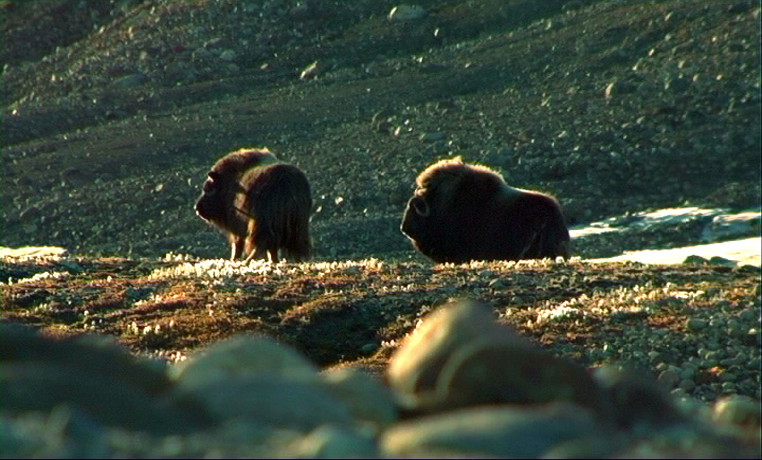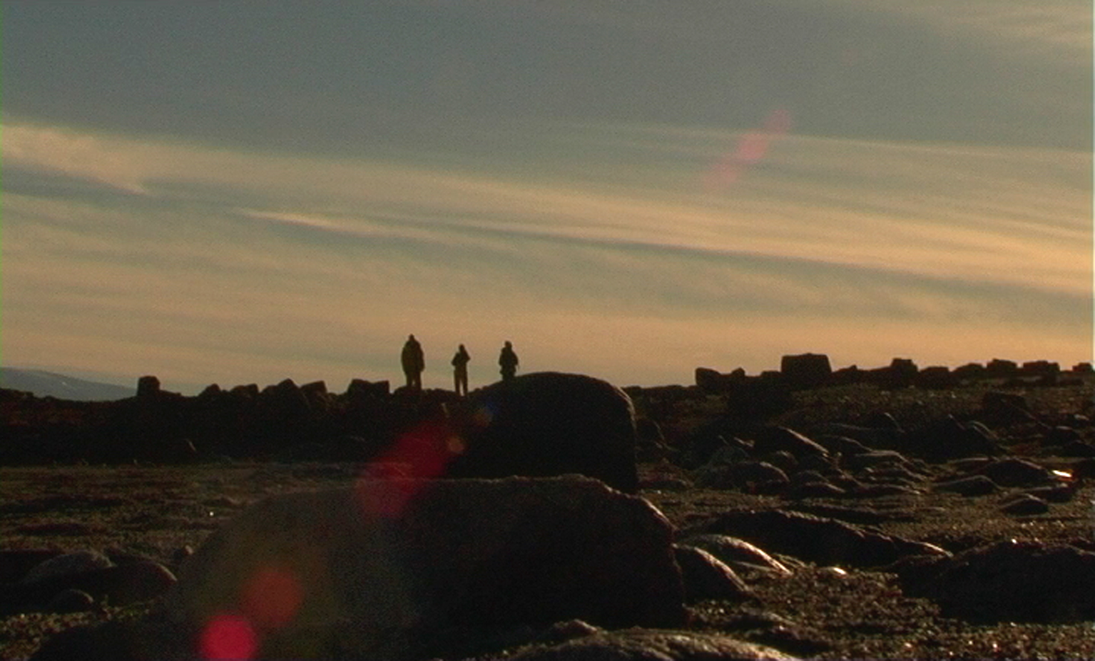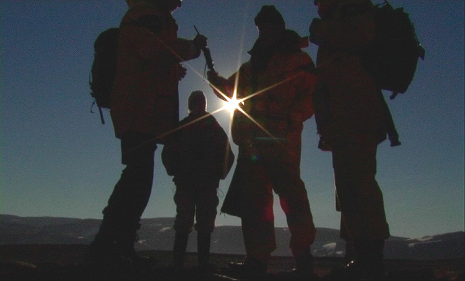 Waar in Michels vorige film, Sur la Terre (2004), een boot voorbijvoer aan een nog nauwelijks ontsloten natuurgebied, daar gaan de wetenschappers in Les Hommes in Groenland aan land. Hoewel de regisseuse met hen meereist, is ze niet geïnteresseerd in hun wetenschappelijke ambities of persoonlijke dromen. Door middel van een buitengewoon abstracte visualisering verbeeldt ze in dit verstilde essay de confrontatie tussen mens en dier, tussen mens en natuur, vanuit een veel wezenlijker perspectief. Bij Michel is er niet de mens die zich de natuur toeeigent, maar is er de natuur die een vreemde indringer observeert. Als de mannen op Groenland aankomen, zijn ze louter vage silhouetten die gedreven worden door al even mistige bedoelingen. Langzaam maar zeker krijgen hun handelingen en motieven meer reliëf; nooit door dialoog, maar steeds doordat de regisseuse vanuit veelal vaste camerastandpunten op hen anticipeert, waardoor hun gedrag, als een gebarentaal, een herkenbare grammatica begint te krijgen. Gaandeweg de film toont de natuur zich even humeurig als nieuwsgierig en verandert een eerste aarzelende kennismaking in een iets intiemere verhouding. Wit en grijs gaan over in meer kleur, verbazing maakt plaats voor gewenning, totdat de mannen uiteindelijk bijna in het landschap opgaan. Maar de vervreemding blijft. Michel maakt voelbaar hoe de kloof tussen de geologische en de menselijke tijd even groot en weids is als het poollandschap zelf. (GT)