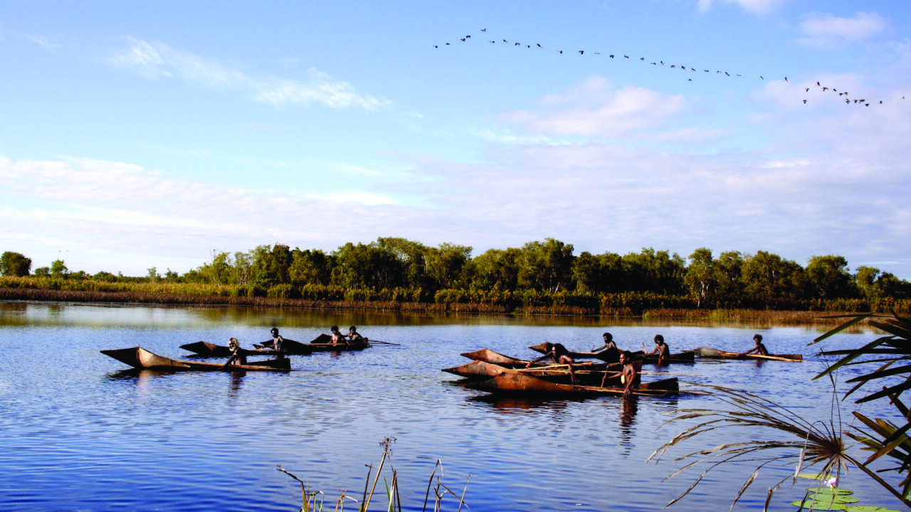 Ten Canoes speelt zich af in het Arafura-moeras in het noordelijkste puntje van Australië en neemt de kijker mee op een reis terug in de tijd, toen de aboriginalbevolking van het moeras nog in hutten woonde, kano’s maakte van berkenbast en op ganzenei-jacht ging. De film werd gemaakt met aboriginalacteurs, die in hun eigen taal de tradities van hun volk naspelen. De casting was lastig, omdat de acteurs de juiste bloedband met hun personage moesten hebben. Op de filmset wemelde het van de krokodillen, muggen en bloedzuigers. En niemand wist meer hoe de kano’s gemaakt werden. Zeventig jaar oude foto’s, gemaakt door de antropoloog David Thomson, brachten uitkomst. Die foto’s vormden oorspronkelijk voor acteur David Gulpilil en regisseurs Rolf de Heer en Peter Djigirr ook de aanleiding om deze unieke film over een reeds verdwenen wereld te maken. Maar Ten Canoes is veel meer dan een gewichtig antropologisch portret van ‘nobele wilden’. Al vanaf de eerste scène wemelt het van de schuine grappen. Verteller Gulpilil (bekend van The Tracker) verhaalt met veel kwinkslagen en terzijdes over een jonge jager die een oogje heeft op één van de vrouwen van zijn oudere broer. Om de jongen op het juiste pad te krijgen, vertelt zijn broer hem een verhaal uit vervlogen tijden. Ook over een jongen die verliefd was op een vrouw van zijn broer. Een verhaal over speren, een vreemdeling, een vermiste vrouw, wraak, magiërs, een op honing beluste dikke oude man – met een wijze les op het eind. (EH)