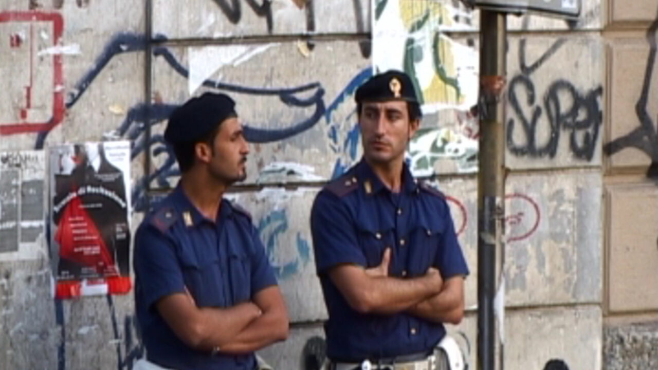 Twee Italiaanse politieagenten staan te wachten tot een stoet met belangrijke mensen arriveert. Eerst laat de camera hen alleen zien, zich stierlijk vervelend, dan zoomt hij uit naar het gedoe rond de aankomst. We eindigen bij de twee mannen. Een one-take-documentaire over wachten op het einde van een ongemakkelijke situatie.