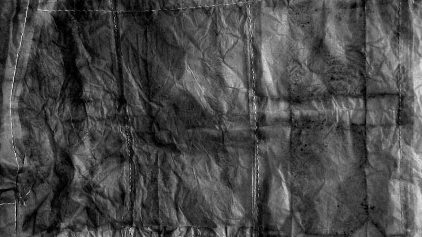 Runentekens van de beschimmelde filmstroken, aangetroffen in de ruïnes van een verlaten schoolgebouw. Gezien door het oog van een naald, mistig. De lei is gevlekt, bibberig en wiebelig. Het verleden gecodeerd. Het moment vastgelegd. Het hart gegraveerd. Een brief, geflankeerd en verzonden, ontvangen, maar steeds teruggezonden. (MM)