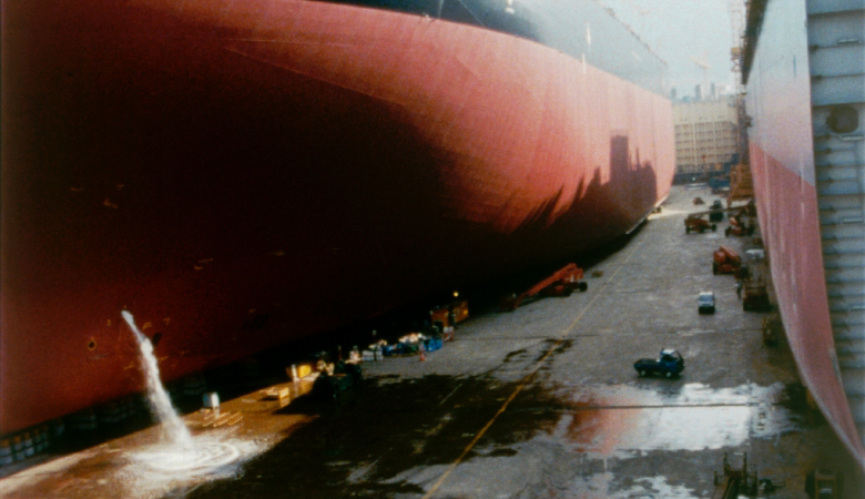 Hutton kent de zee. De ervaringen die hij opdeed bij de koopvaardij hebben invloed op zijn manier van filmmaken, die bekend is vanwege strakheid en epische schoonheid. At Sea begint in Zuid-Korea waar we piepkleine arbeiders een schip zien bouwen. Dit enorme vaartuig wordt getoond in proporties waar De Chirico zich niet voor zou hoeven te schamen, in een voor het menselijk oog surreële omvang. De zee op, waar de pracht en intensiteit van het water – afgezet tegen de levendige kleuren van de containers – ons de wereld met nieuwe ogen doen zien. De film eindigt in Bangladesh tussen de scheepsslopers, die net zo gebiologeerd zijn door Huttons camera als wij door zijn beelden. (Andrea Picard)