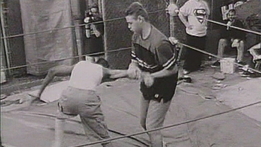 Ook in BB richt Cameron Jamie zijn blik op een volksritueel dat zich aan de rand van de maatschappij afspeelt. Ditmaal filmt hij in de achtertuin van San Fernando Valley, de zich sinds de jaren vijftig eindeloos uitspreidende buitenwijken van Los Angeles. Hier domineren shopping malls en klassengevoelige wijken met een weinig inspirerende architectuur het landschap en worden de bewoners welhaast gedwongen tot een anoniem individualisme. Cameron Jamie groeide er zelf op en portretteert hoe jongeren er in hun tuintjes worstelwedstrijden houden die nog het meest op een soort van georganiseerd en gesimuleerd geweld lijken. Met verschillende super8-camera’s tegelijkertijd filmt hij in zwart-wit hoe jonge mannen zich opmaken voor het duel door hun gezichten te beschilderen en zich vervolgens in een geïmproviseerde ring overgeven aan een opmerkelijke worstelchoreografie die agressief is maar toch grenzen kent. Hun ritualistische bewegingen en uiterlijk refereren aan de lucha libre, de professionele, van oorsprong Zuid-Amerikaanse worstelwedstrijden waarin gemaskerde mannen zich met elkaar meten, en die ze van de televisie kennen. Geaccentueerd door de drone van de soundtrack van The Melvins krijgen hun projecties en vertolkingen, nu ze zelf gefilmd worden, iets van een initiatieritueel dat zowel archaïsche als hypermoderne elementen vertoond.