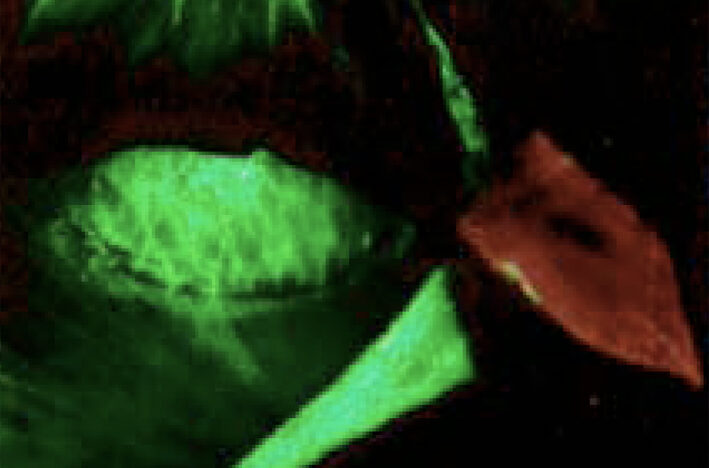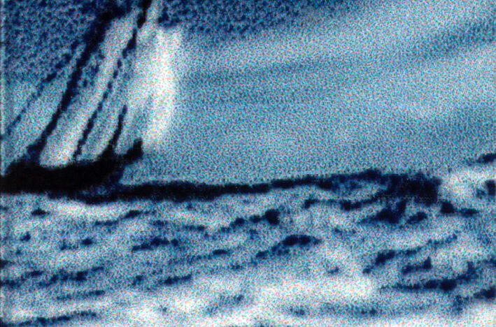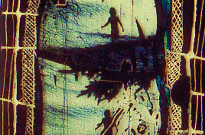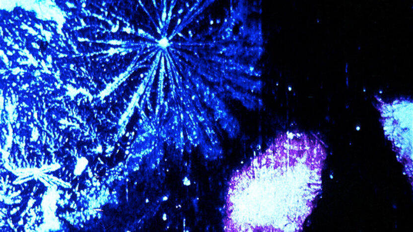 Imaginaire fotogrammen kruipen over de emulsie, in hun voortbeweging geremd door herfotografie. Deze vlekken lijken op veelkleurige spinnen die naar een nieuwe verblijfplaats kruipen. Keer op keer vallen ze van de horizon van het beeld in warme tinten rood, paars en bruin.