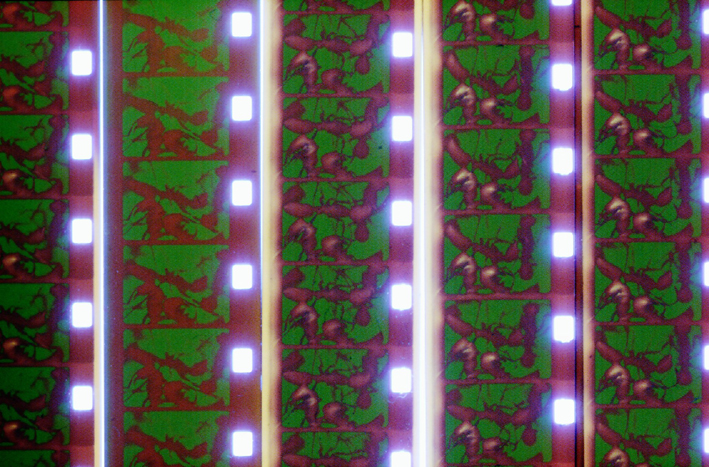 Met een goed oog voor compositie en een rolletje super8-film ‘scant’ de maker de omgeving op fragmentarische wijze. -