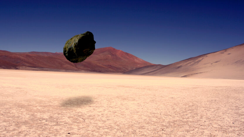 Zeefdruk gecombineerd met bestaande fotografie. De beelden doen denken aan een verlaten woestijn waar Marsvoertuigjes getest zijn. Een studie van clos -