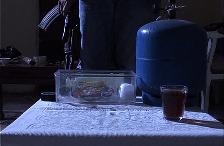 In een donkere ruimte zien we twee mannen die bij het licht van een gaslamp met de voorbereidingen bezig zijn van een militaire actie. De een is in de weer met een pakketje met daaraan wat schakeldraden, de ander herstelt met naald en draad zijn kleding. Ondanks de serieuze aard van hun handelingen heeft het ook iets teders. Als de dag is aangebroken, wordt het voor een van hen tijd om op te treken.