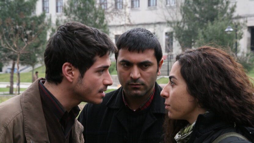 Voor de achttienjarige Cemal is zijn toelating aan de universiteit van Istanbul meer dan alleen een gelegenheid om zijn opleiding voort te zetten: het is zijn grote kans om zijn afgelegen Koerdische dorp in Zuidoost-Turkije voorgoed achter zich te laten. Als hij met de bus aankomt wordt hij overweldigd door de grandeur van de grote stad, maar de historische campus is een heel ander verhaal. Dit speelt in het begin van de jaren 1990. De activiteiten van de radicale studenten zijn op een hoogtepunt en de politie patrouilleert op het universiteitsterrein. Onze naïeve hoofdpersoon volgt rustig zijn colleges en houdt zich gedeisd, maar het duurt niet lang of de populaire studente Helin weet hem en twee andere Koerdische medestudenten, Orhan en Rojda, over te halen om mee te doen met haar tegen het systeem gerichte revolutionaire groep. Het is een cruciale tijd, waarin ze zichzelf leren kennen. De drie vrienden beginnen de status quo in twijfel te trekken en worden trots op hun culturele identiteit. Ze vormen nieuwe vriendschappen, worden verliefd, lezen Marx, praten over hun dromen en laten zich meeslepen door de verwachte revolutie. Maar het is niet allemaal koek en ei. Er ontstaan conflicten binnen de groep en de politie aast op hen als rondcirkelende gieren. Kazim Öz, die bekendheid geniet door zijn boeiende documentaires over het leven van de Koerden, komt hier met een meesterlijke tweede speelfilm in de vorm van een verhaal dat op realistische wijze de sociale beroering en de dadendrang binnen de Turkse studentenbeweging van het vorig decennium in beeld brengt. Hard en hartverscheurend, is The Storm onder een jong publiek in Turkije al aardig op weg naar de status van cultfilm. (EY)