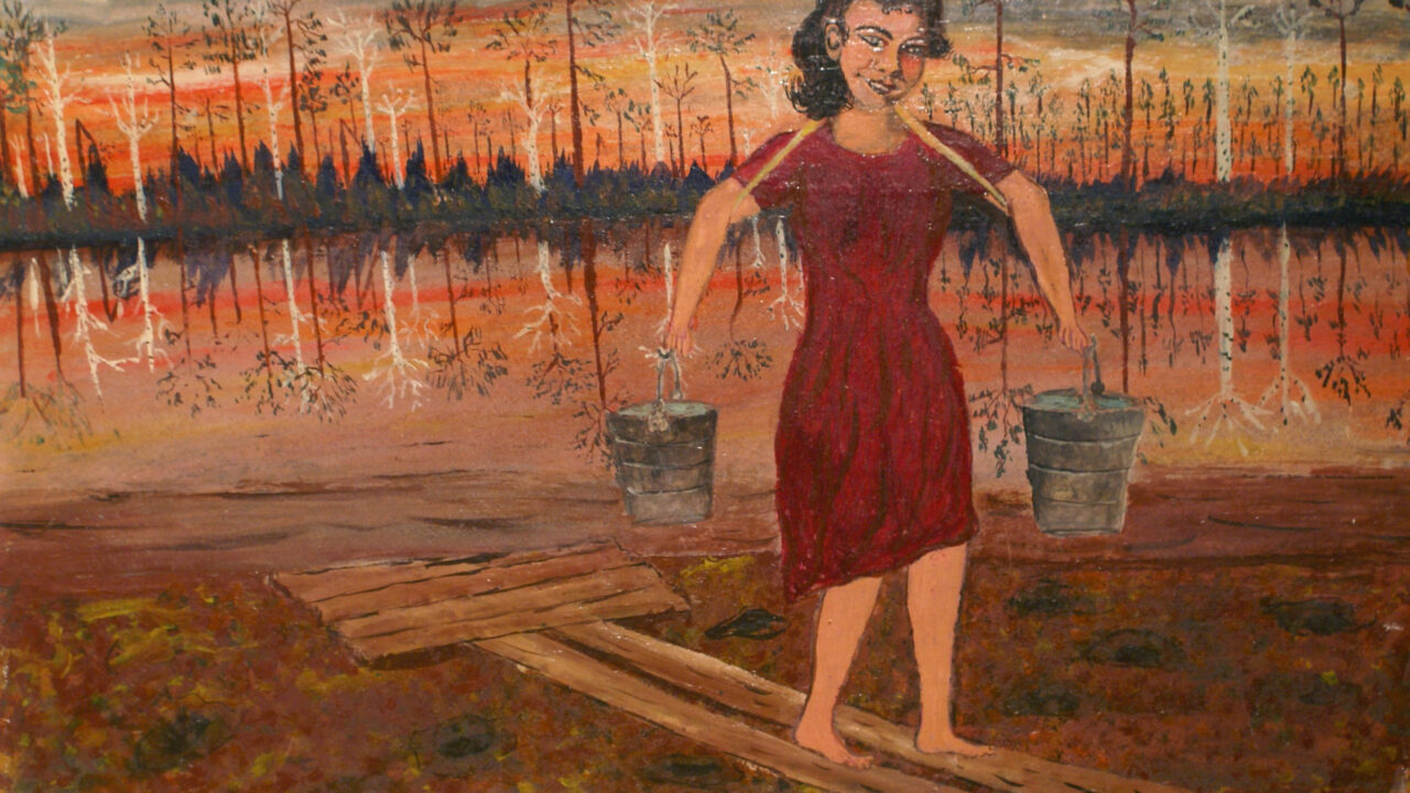 Bijzondere textielanimatie over het zware leven van de mensen die het borduurden. Beeldschoon geanimeerde borduursteken in volstrekt oprecht portret.V -