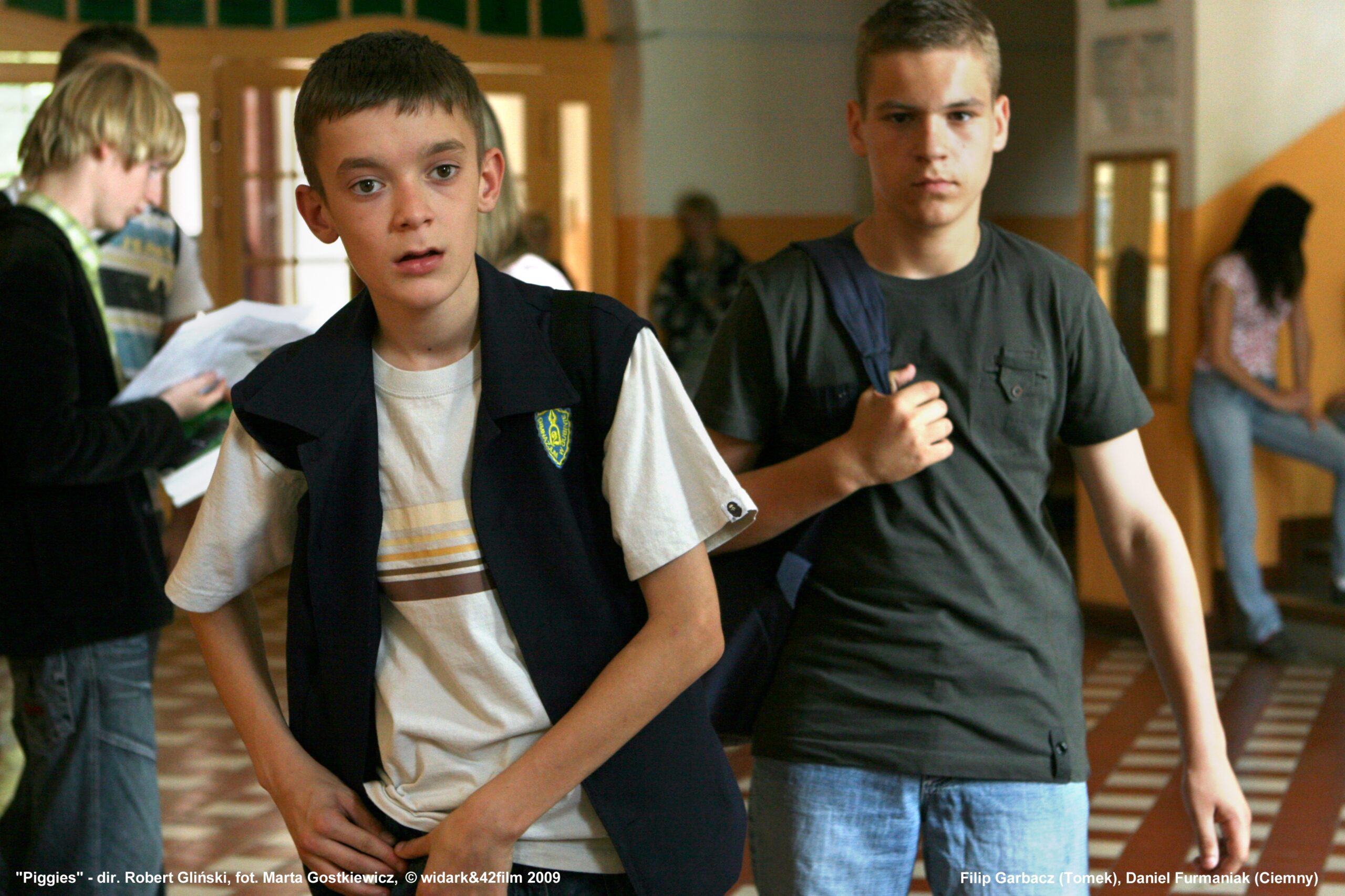 In het grensgebied tussen Polen en Duitsland waar Piggies zich afspeelt, is het woord uit de titel (‘swinki’ in het Pools) synoniem voor tieners die zich prostitueren. Niet alleen voor geld, maar voor van alles: kleren, parfum, drank. Ze denken gebruik te maken van de welvaart van de Duitsers die aan de andere kant van de grens (en aan de overkant van de rivier) wonen, maar beseffen niet altijd dat zij degenen zijn die gebruikt – en misbruikt – worden. Piggies gaat over zo’n tiener, Tomek, een jongen die geld nodig heeft voor dure cadeaus voor zijn vriendin. De wrange, pijnlijk realistische film dankt zijn authenticiteit onder meer aan het feit dat de scenarioschrijfster zelf twintig jaar woonde in het stadje waar het verhaal zich afspeelt. De belangrijkste rollen worden gespeeld door niet-professionele acteurs, waar regisseur Robert Glinski heel Polen voor afzocht. Het is de elfde speelfilm van Glinski, die vooral met Hi, Tereska (2001) furore maakte.