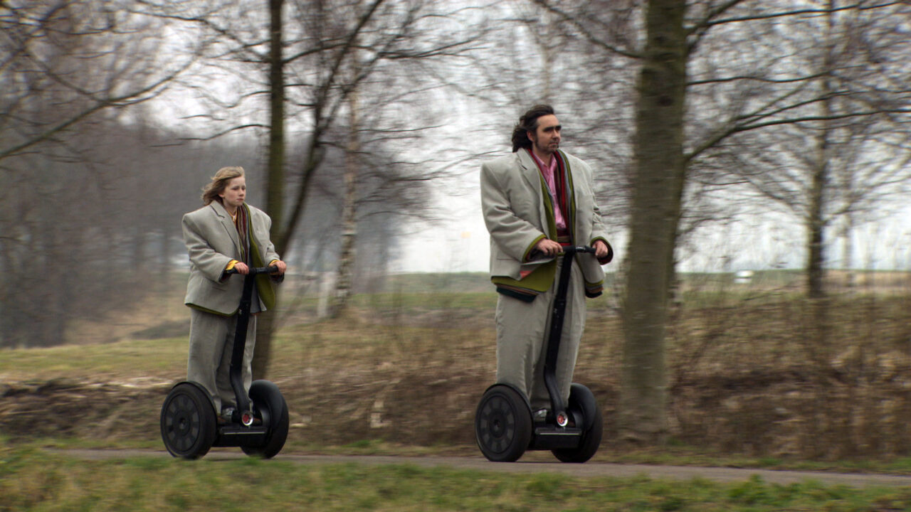 Vader en zoon, toerend door het land op hun Segway, verhouden zich tot het landschap, de dingen en elkaar. Als onderdeel van het All Suits Project maakten de kunstenaars Sylvie Zijlmans en Hewald Jongenelis dit prachtige staaltje Hollands surrealisme.