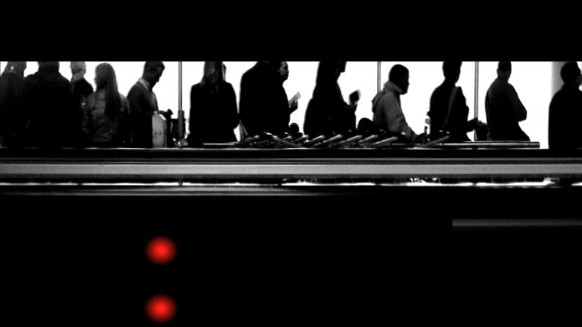 Een drukke luchthaven bezien vanuit verschillende blikvelden, afwisselend van bovenaf en van onderaf gefilmd. Hierdoor wordt het perspectief beperkt, maar ook weer verbreed. De beelden zijn maar deels herkenbaar en verschaffen ons dus te weinig context om een mogelijk evenwicht te ontwaren.