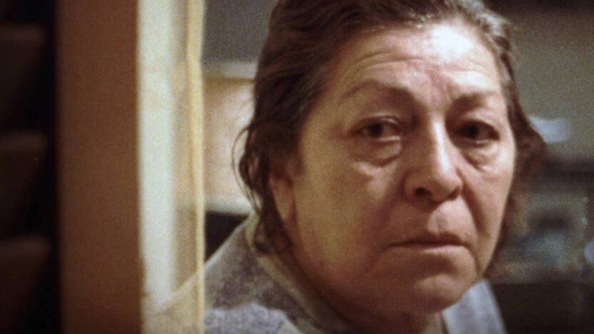 Oudere dame probeert contact te leggen buiten de beslotenheid van haar flat. Intiem portret van een alleenstaande, die overloopt van genegenheid. Voor -
