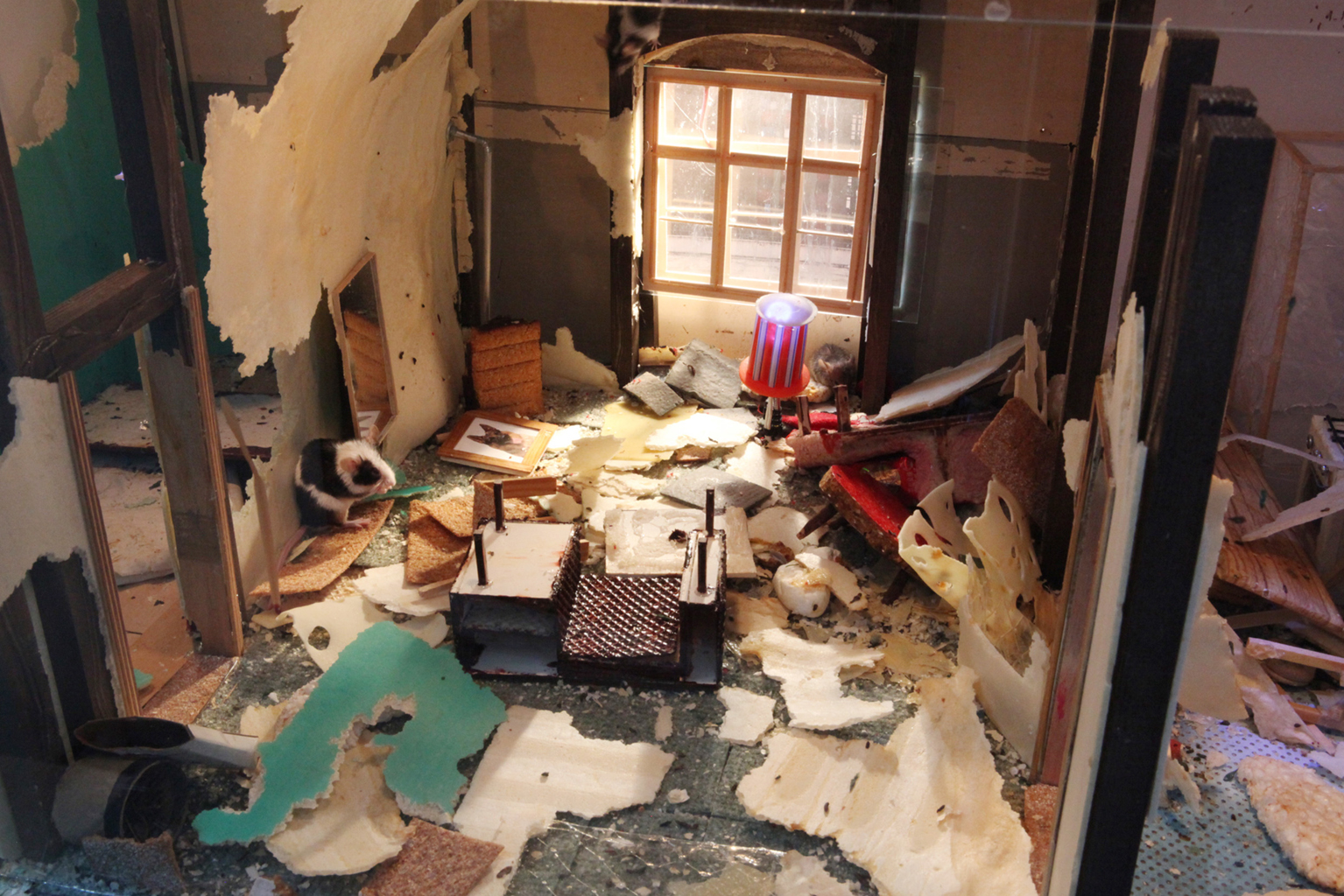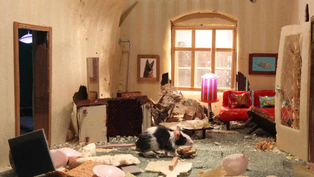Voor Mouse Palace werd een appartement nagebouwd als een 1 op 10 schaalmodel. Met eetbare meubels waar de muizen direct aan begonnen te knabbelen. Een absurd relatiedrama in de Living Space series van Hund en Horn met onder meer Dropping Furniture, over het menselijk bestaan onder bizarre omstandigheden. Voorfilm bij Gravity Was Everywhere Back Then.
