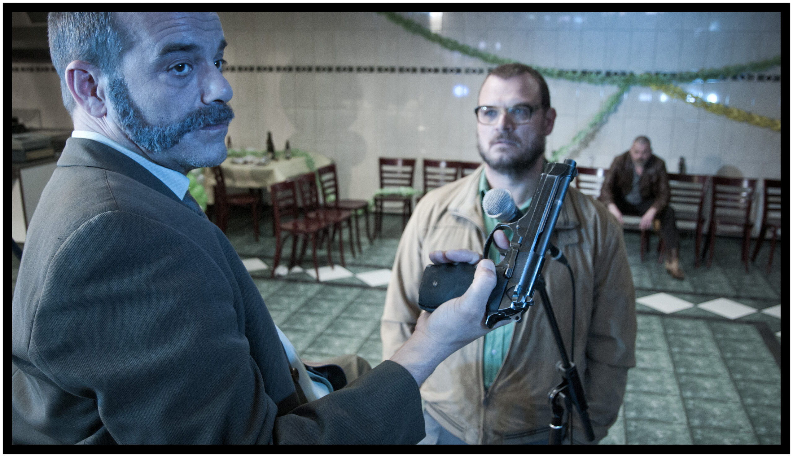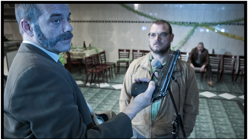 ‘Hij is totaal anders,’ vertelt zijn maat Janus een tikje geschrokken. ‘Zoals Bruce Willis in The Sixth Sense totaal anders is dan in Die Hard. Hij is gewoon de oude Ronnie niet meer!’ De Amsterdamse criminelen Ronnie (brace om zijn nek, grote hoornen bril en een machtige buik) en zijn lijfwacht/chauffeur Janus (bakkebaarden, jarenvijftig-overhemden) dolen samen door het Friese Dokkum, op zoek naar een man die het wapen van Dokkum aan de binnenkant van zijn pols heeft getatoeëerd. Dan maakt de film een sprongetje terug in de tijd en maakt de kijker kennis met ‘de oude Ronnie’, een snoeiharde crimineel met meerdere dwangneuroses. De strapatsen van Ronnie en Janus worden doorsneden met die van Eduardo, een jonge asielzoeker uit Angola die in Dokkum in het AZC verblijft. Omdat Eduardo niet kan praten over de verschrikkingen die hij heeft meegemaakt, ziet hij zijn kansen op een verblijfsvergunning in rook opgaan. De wederopstanding van een klootzak is het speelfilmdebuut van de Amsterdamse kunstenaar, strip- en filmmaker Guido van Driel, gebaseerd op zijn eigen grafische roman Om mekaar in Dokkum uit 2004. De dialogen zijn prikkelend, de fotografie is schitterend.Yorick van Wageningen is grandioos als de transformerendeRonnie; de op 3 december 2012 overleden Jeroen Willems maakt indruk in een bijrol als meedogenloze gangster. Openingsfilm voor genodigden IFFR 2013.
