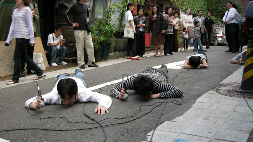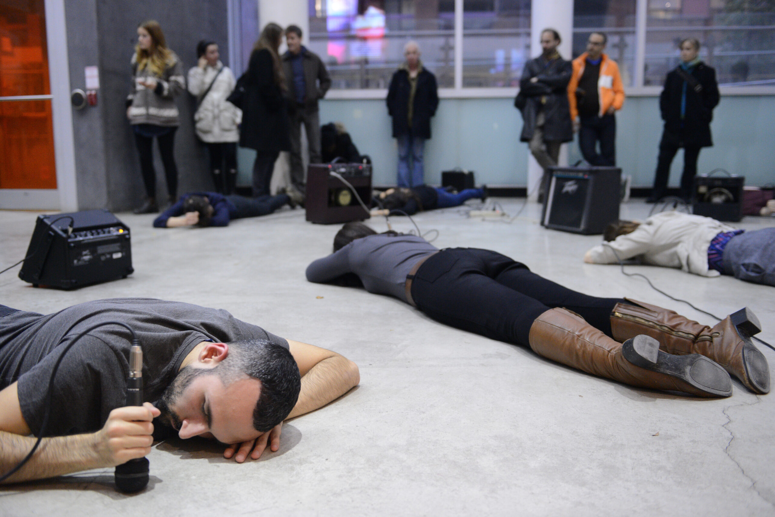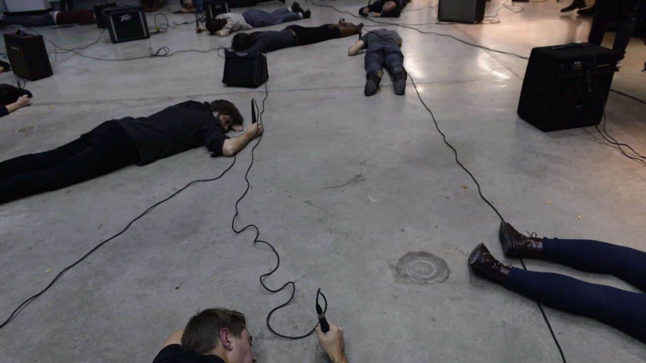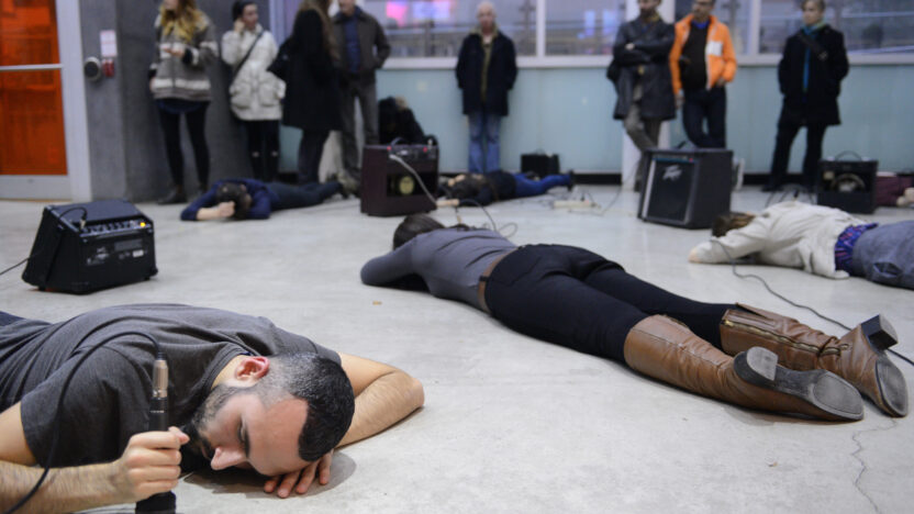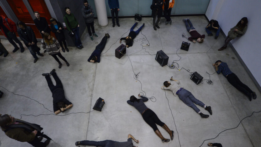 De Canadese denker, kunstenaar, muzikant en schrijver Christof Migone is geïnteresseerd in simpele, niet-vastomlijnde concepten, die we samen kunnen uittesten en die voortbouwen op ideeën over taal, stem, lichamen, performance, ruimte, intimiteit, medeplichtigheid en uithoudingsvermogen. Sinds halverwege de jaren 80 verweeft Migone een groot aantal media, van radio tot telefoons, tot digitale voorwerpen, en maakt zo verbluffend en zeer dynamisch werk. Zijn laatste boek, Sonic Somatic (Errant Bodies Press, Berlijn, 2012), is een radicale auditieve studie die de complexiteit omvat van stilte en stomheid, identiteit en verachtelijkheid, en taal en zijn uitingsvormen. Hit Parade is een typisch voorbeeld van zijn lichaamsgerichte doe-het-zelfbenadering. Eerdere versies van deze performance vonden plaats in Montreal, New York, Porto, Quebec, Seoul, Toronto en Winnipeg.