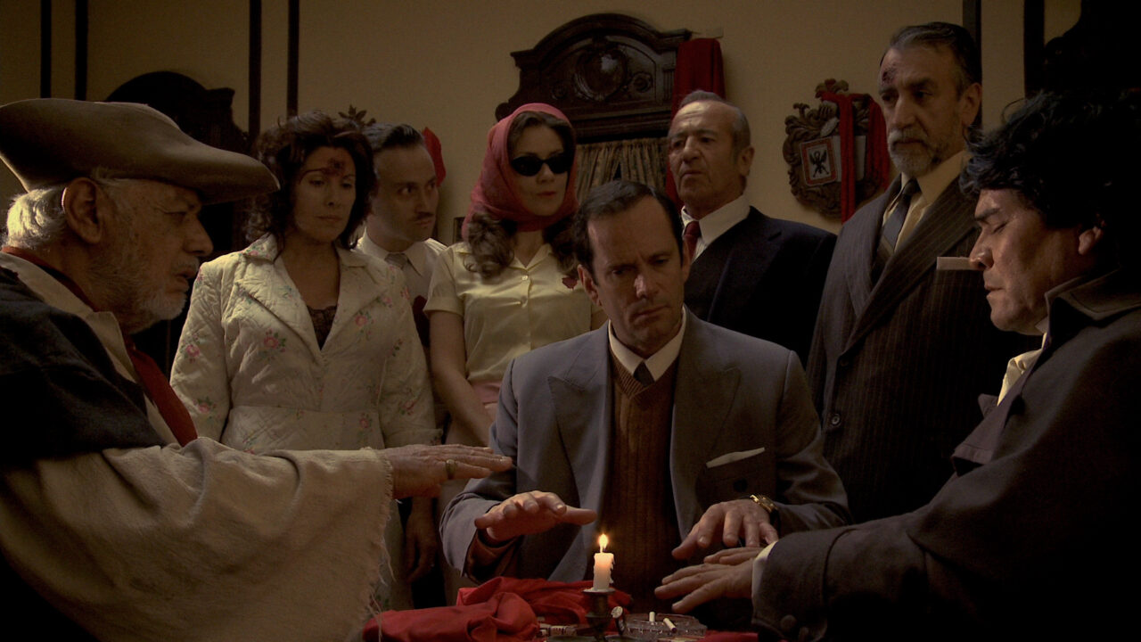 Deze laatste film van de in 2011 overleden Raúl Ruiz, een adaptatie van de gelijknamige roman van Hernan del Solar, laat zich bekijken als een lange take langs thema’s die de Chileense filmmaker door de jaren heen in meer dan honderd films liet passeren. Muziek, literatuur, cinema, de vloeibare en circulaire tijd, de kindertijd en de politieke verbanning waardoor hij zelf jarenlang gedwongen was zijn geboorteland Chili te verlaten. Het is woensdag als de film begint. Don Celso moet over vijf dagen met pensioen. Hij wil niet, hoewel hij verklaart geen ideeën meer te hebben om zijn werk te kunnen doen. Desgevraagd zegt hij te wachten op een vreemdeling die hem komt vermoorden. Ruiz laat heden en verleden gaandeweg meer en meer in elkaar overlopen, die net als leven en dood geen afzonderlijke categorieën meer blijken. Een melancholische reflectie van wat de filmmaker aan het eind van z’n leven bezighield, maar kenmerkend voor Ruiz is dat La noche de enfrente steeds licht van toon blijft.