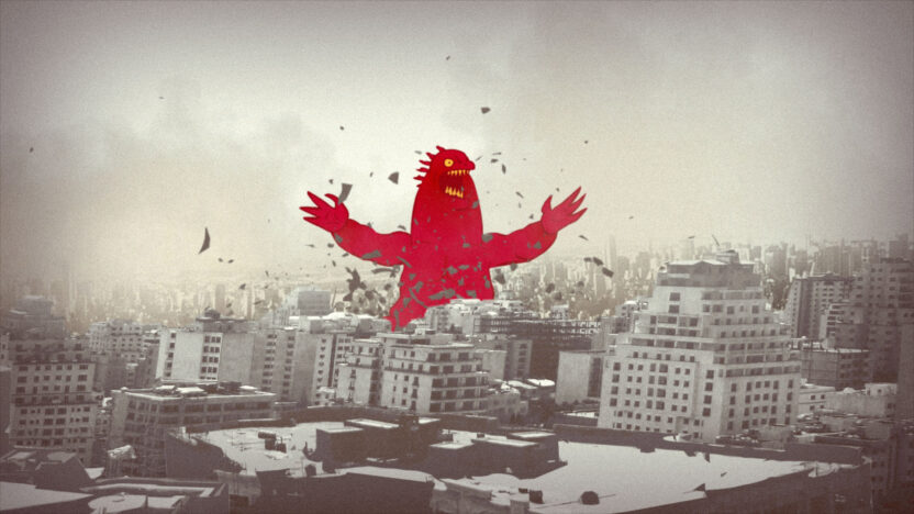 Ramin Rahimi noemt zichzelf een narratief kunstenaar. Hij schrijft, tekent, illustreert en maakt animaties. Zo ook Red Thing. Terwijl een vrouw onverstoorbaar haar telefoongesprek voert, landt een gigantisch rood, Godzilla-achtig wezen in de stad. Het beest doet er alles aan om door haar opgemerkt te worden.