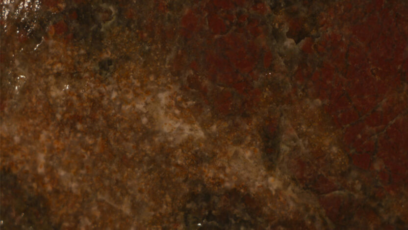 Eenvoudige maar effectieve animatie van gesteente en aardlagen. Wat vast is wordt vloeibaar, net als ons tijdsbesef.